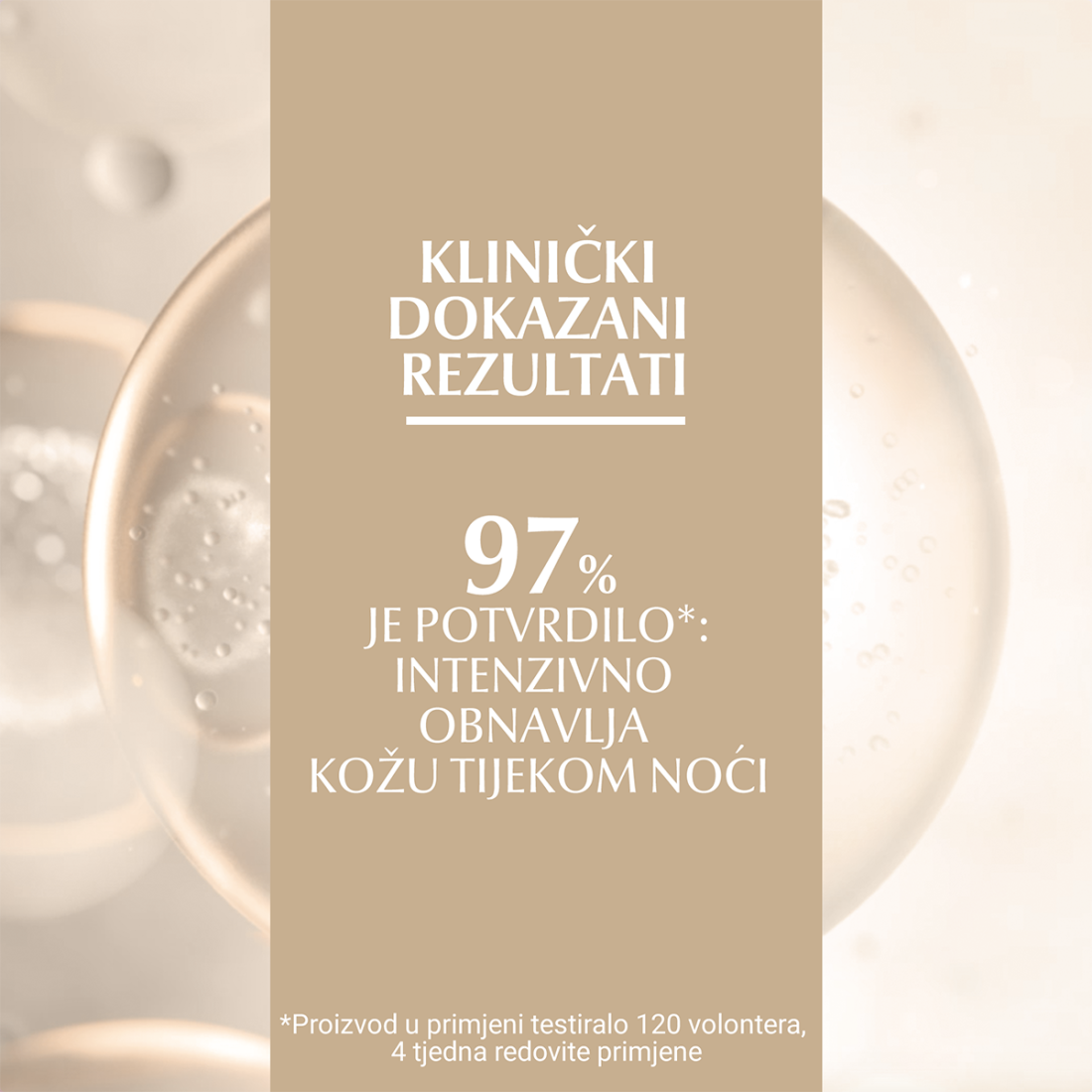 Formulirano s pouzdanom hijaluronskim kiselinom, patentiranim thiamidolom, novim kompleksom kolagena i elastina i arganovim uljem zadovoljava sve potrebe njege zrele kože lica. Hijaluronska kiselina hidrira i popunjava bore. Patentirani thiamidol klinički dokazano vidljivo smanjuje hiperpigmentacije i sprječava njihovo ponovno pojavljivanje. Kompleks kolagena i elastina potiče proizvodnju kolagena i vraća elastičnost kože lica. Arganovo ulje obnavlja lipide, pomaže regeneraciju kože i pruža intenzivnu njegu.