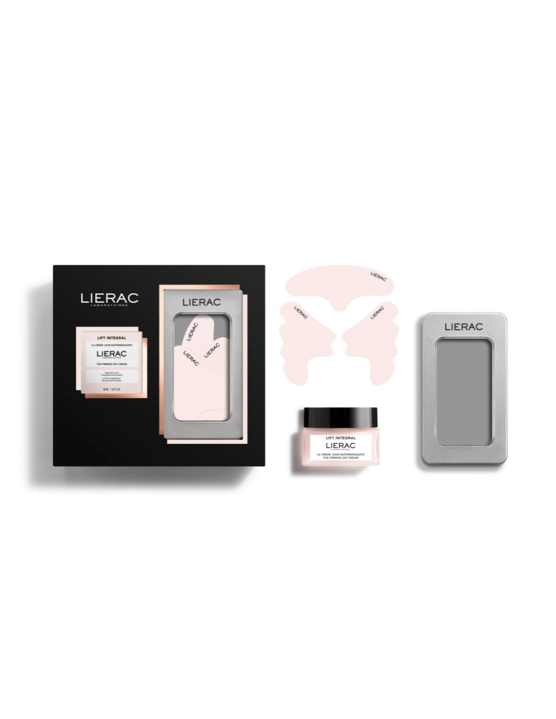 Set Lift Integral sadrži Lierac Lift Integral dnevnu kremu, koja jača strukturu kože djelujući na njezine bitne elemente (kolagen, elastin i hijaluronsku kiselinu) te višekratne jastučiće za lice.