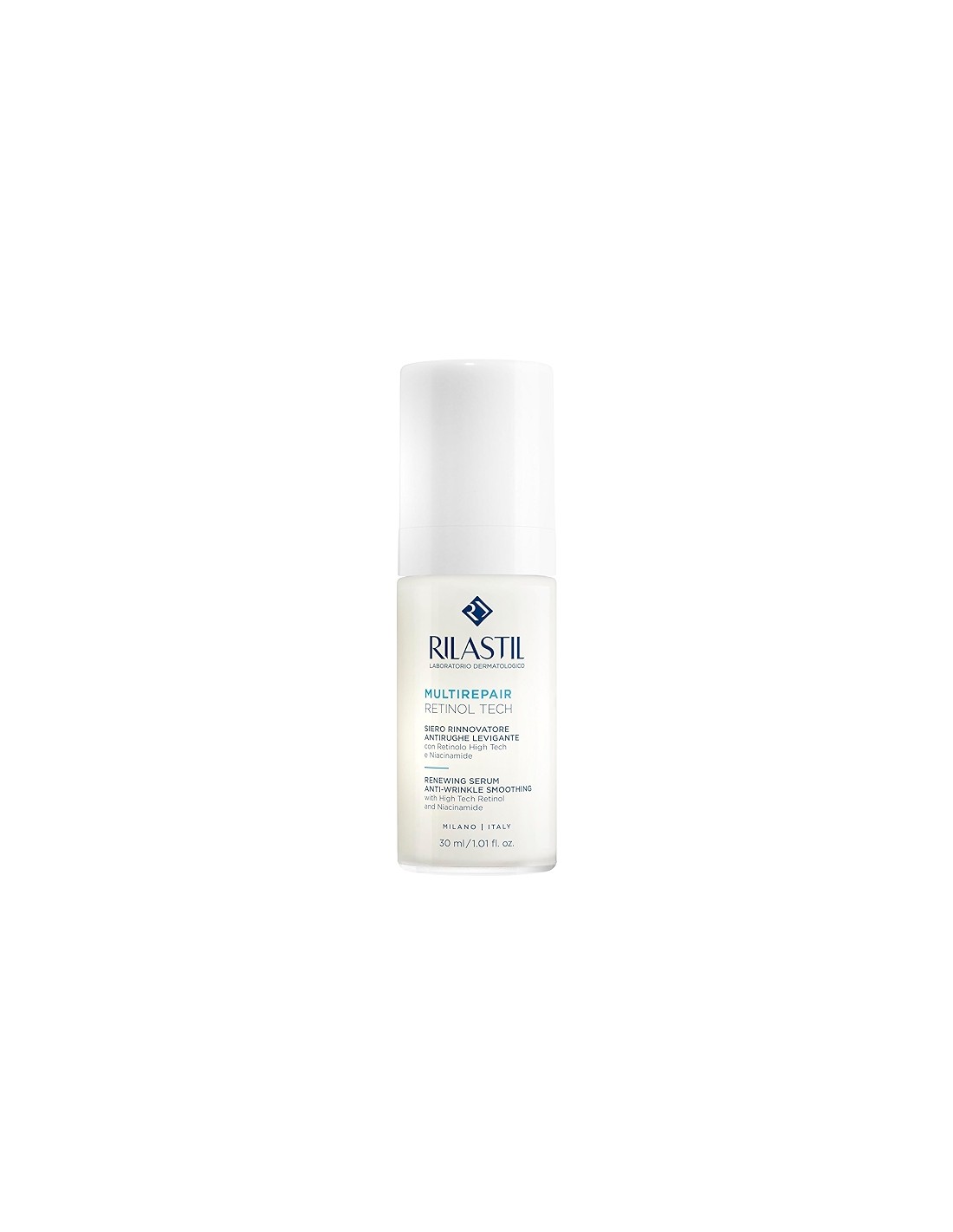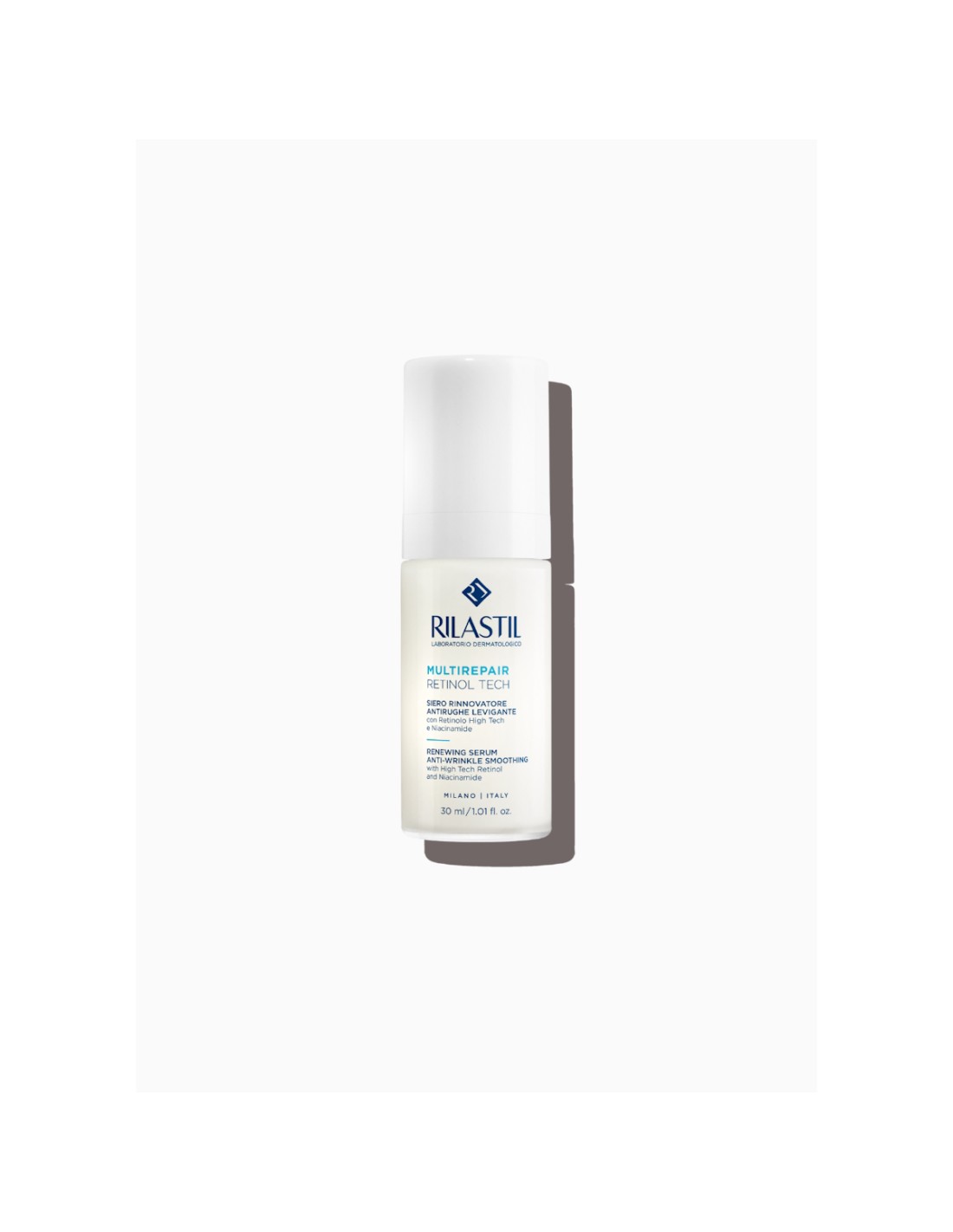 Rilastil Multirepair Retinol Tech 0,3% je napredni noćni serum za lice, vrat, dekolte i ruke, namijenjen svim tipovima kože, uključujući kožu sa znakovima starenja i neujednačenom teksturom.