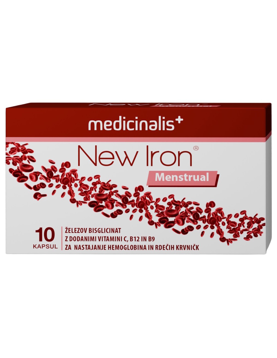 New Iron® Menstrual sadrži željezov bisglicinat, vitamin C, folnu kiselinu i vitamin B12, koji poboljšavaju apsorpciju željeza, podržavaju stvaranje crvenih krvnih zrnaca i pridonose u održavanju energije.