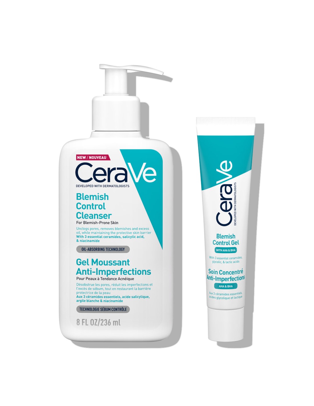 CeraVe Blemish Control Cleanser gel za čišćenje za kožu sklonu nepravilnostima + CeraVe AHA BHA Gel za kožu sklonu nepravilnostima