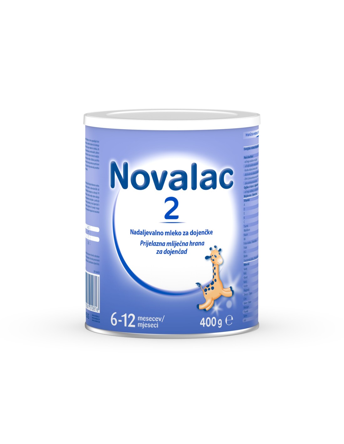 Novi sastav: Sastav mliječne hrane Novalac 2, 400 g promijenjen je: dodana je omega-3 masna kiselina DHA i prilagođen sadržaj nekih vitamina i minerala. Mliječna hrana Novalac sada sadržava još više vitamina D, K, B1, B6 i folata. Nova mliječna hrana tako je još prilagođenija potrebama dojenčadi. Vi, roditelji moći ćete primijetiti promjene sastava tako da će mlijeko u prahu imati malo drukčiju boju, teksturo, miris ili okus. Mlijeko će se možda malo drukčije otapati ili pjeniti pri pripremi. Budite mirni, to je posve normalno i nikako ne utječe na sigurnost ili kvalitetu proizvoda. Vjerujemo, da će se i vaša beba brzo naviknuti na obogaćen okus. Za dodatne informacije možete nam se obratiti na adresu info@novalac.hr.