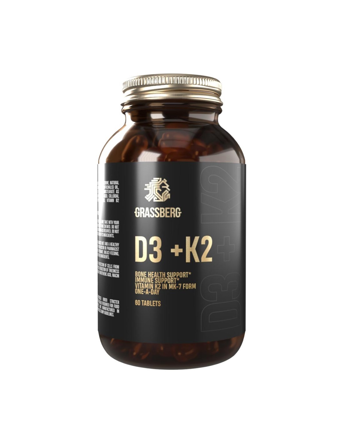 Grassberg Vitamin D3 + K2 kombinira dvije ključne hranjive tvari koje djeluju u sinergiji za optimalno zdravlje organizma. Samo jedna tableta dnevno sadrži 2000 IU vitamina D3 + 18 µg vitamina K2 (MK-7) za stabilnu podršku kostima i krvnim žilama.