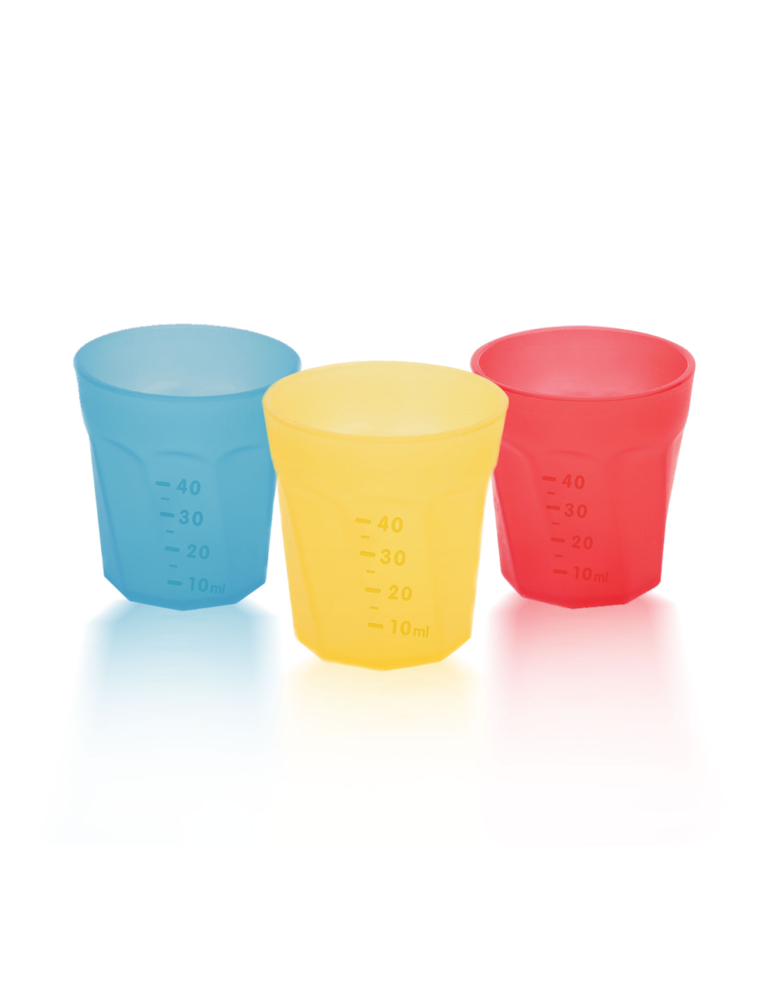 Čašice imaju izražene mjere u ml (do 40 ml).
