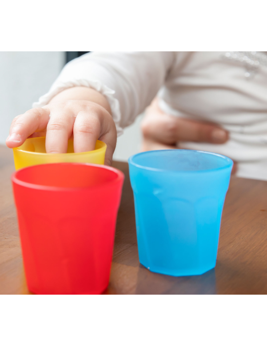 Mini čašice pomažu u učenju samostalnog pijenja. Set uključuje 3 čašice odgovarajuće veličine za male ruke i usta.