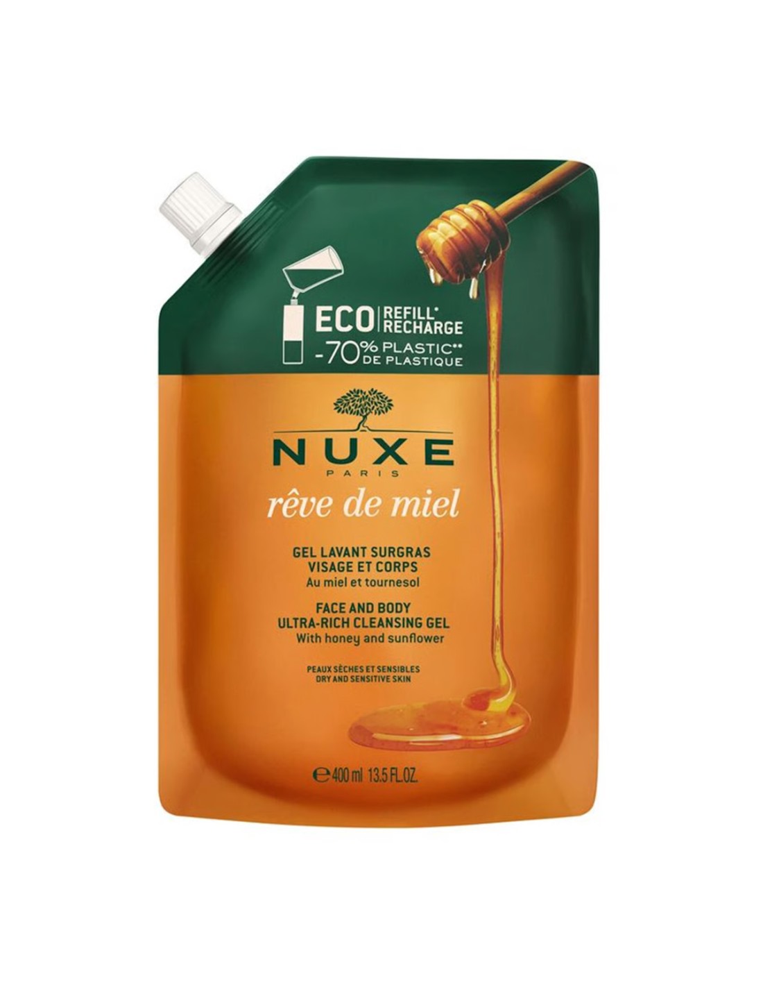 S gurmanski neodoljivom aromom meda, ovaj Gel za čišćenje lica i tijela s medom i uljem suncokreta, svakodnevno brine o suhoj i osjetljivoj koži cijele obitelji, poštujući njezin hidrolipidni sloj. Čisti kožu lica i tijela bez sapuna i isušivanja. Razmazite svoju kožu pod tušem ovom medenom poslasticom.