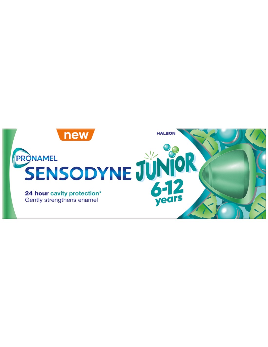 Sensodyne Pronamel Junior dječja pasta za zube, pogodna za uzrast od 6–12 godina, posebno je dizajnirana da pomogne u zaštiti zuba od utjecaja kiseline iz hrane i pića.