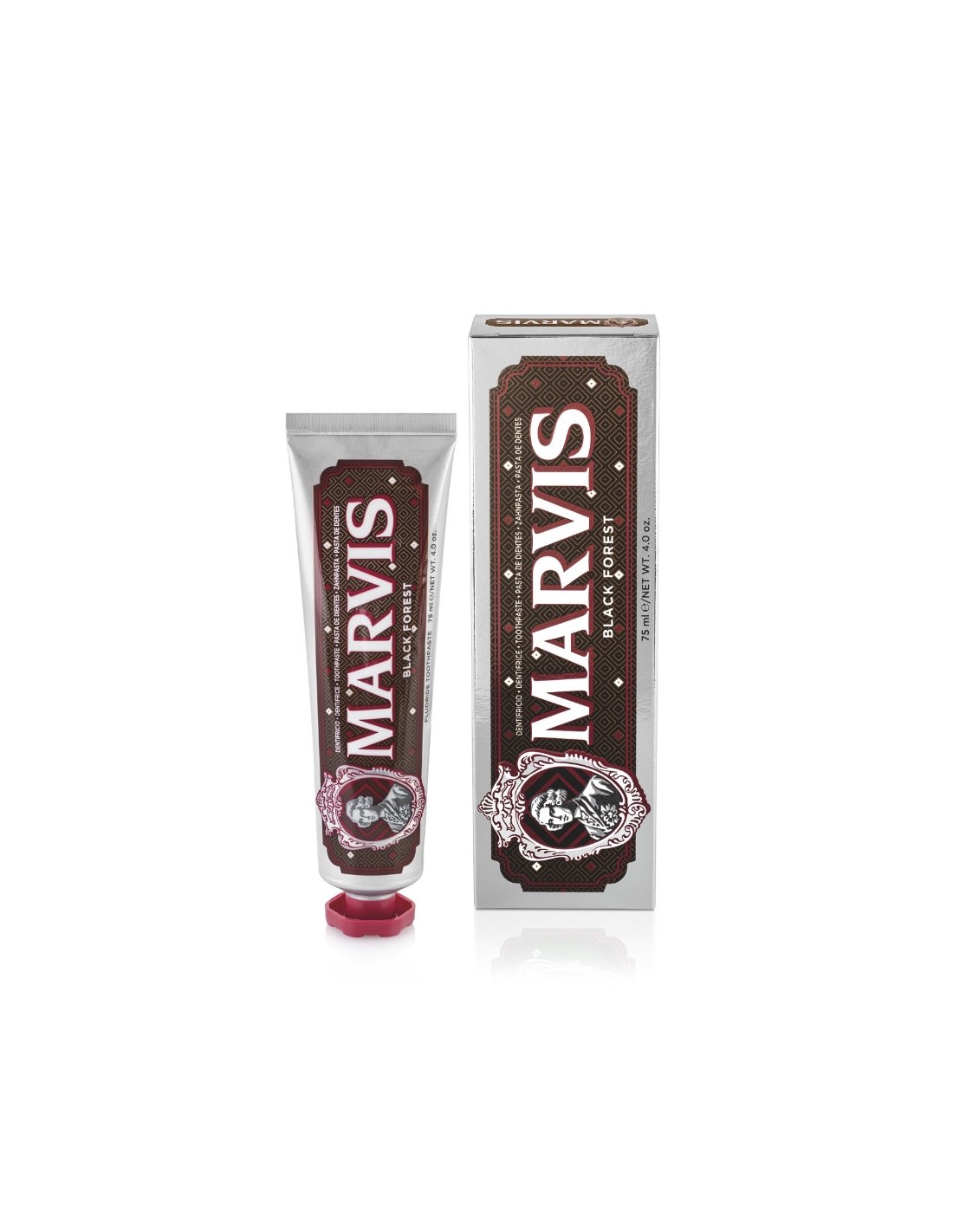 Marvis Black Forest limitirano je izdanje zubne paste koje kombinira bogate note tamne čokolade, sočne višnje i blagog marcipana uz osvježavajuću mentu.