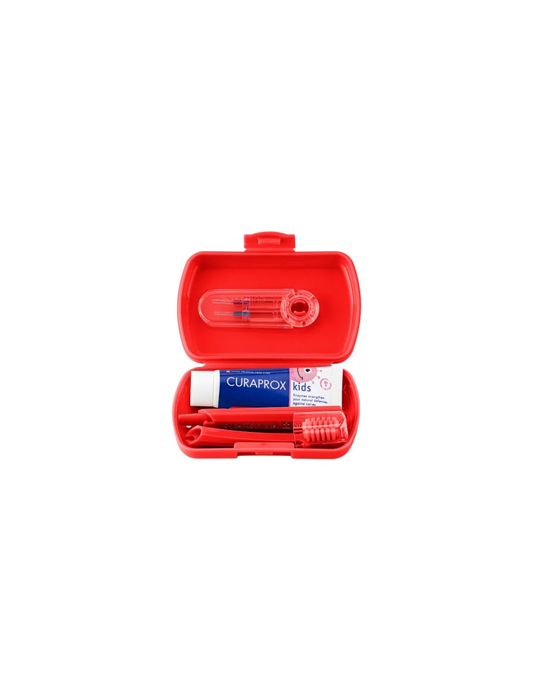 Curaprox Kids Putni Set za zdrav i blistav osmijeh vašeg mališana. Ovaj praktičan set sadrži sve što je potrebno za kvalitetnu oralnu higijenu: putnu četkicu za zube s 5 500 ultra mekanih Curen® vlakana, malu putnu pastu za zube s fluoridima (10 ml i s okusom mentola) i dvije veličine međuzubnih četkica CPS prime (CPS 06 i 07). Posebno je dizajniran za djecu od 6 do 12 godina i s mogućnošću refilla kako bi svaka tri mjeseca ili prema potrebi zamijenili glavu četkice, pastu za zube ili međuzubne četkice. Veseli dizajn nudi personalizaciju seta uz priložene zabavne naljepnice. Savršen za obiteljske odmore, školske praznike, druženja s prijateljima, kao i svakodnevnu upotrebu. Curaprox Kids putni set za 100% čiste zube, čak i u pokretu. Proizveden u Švicarskoj, vrhunske Curaprox kvalitete, za mlade istraživače pruža najbolje praktično rješenje do zdravog i blistavog osmijeha.