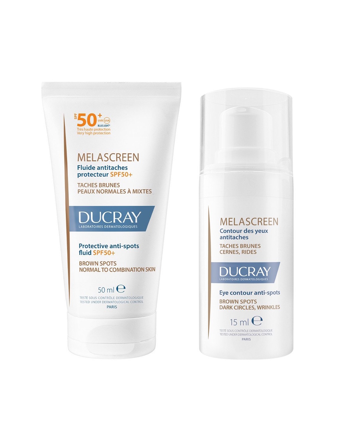 Ducray Melascreen Zaštitni fluid protiv mrlja SPF50+ + Ducray Melascreen krema oko očiju
