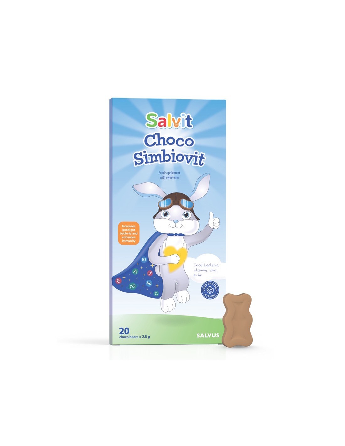 Salvit Choco Simbiovit je dodatak prehrani u obliku ukusnih čokoladnih medvjedića s okusom kakaa, namijenjen djeci od 3 godine i odraslima.
