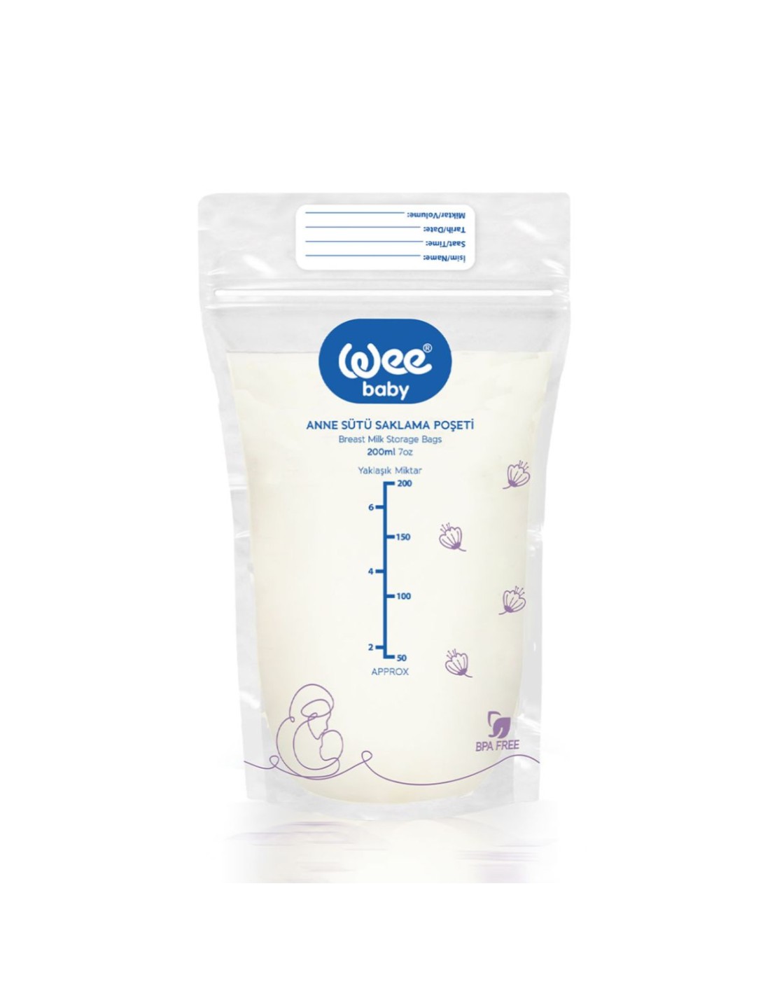 Napunite vrećicu mlijekom i uklonite zrak iz nje prije zatvaranja. Koristite mekanu olovku kada upisujete datum pohrane na za to predviđeno mjesto. Može se skladištiti i okomito i vodoravno. Izdojeno mlijeko pohranjeno u Wee Baby vrećicama za pohranu mlijeka možete čuvati na sobnoj temperaturi (25°C) 3 sata, u hladnjaku (0°C - 4°C) 3 dana i u zamrzivaču (-18°C) 3 mjeseca.