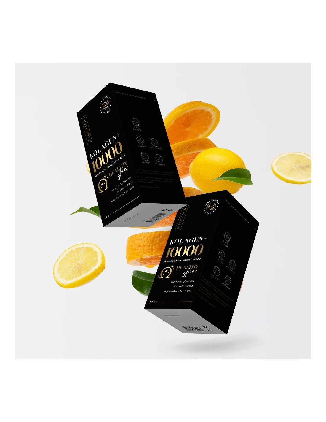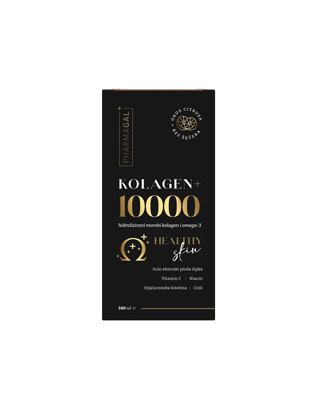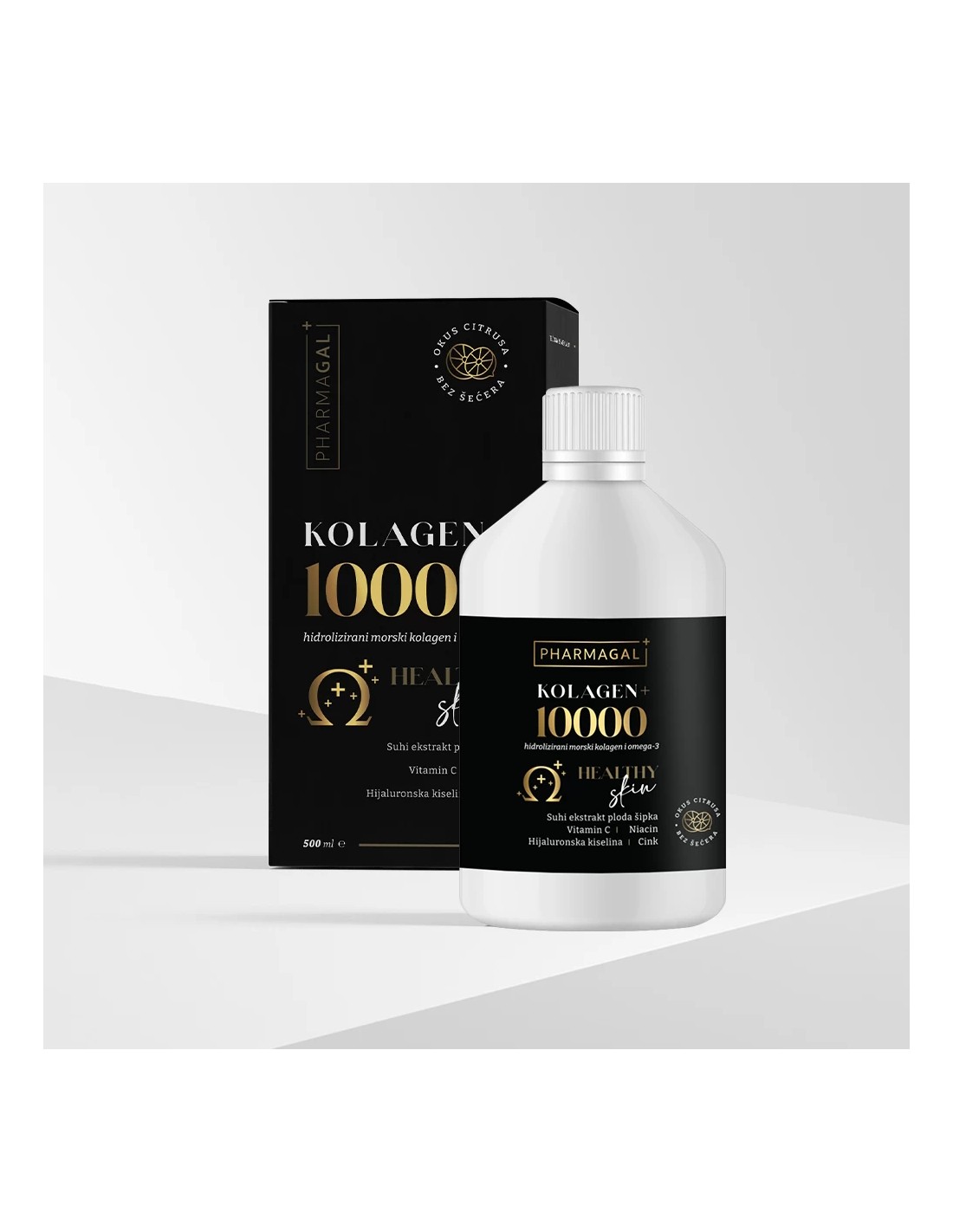 Za dozu od 10 000 mg kolagena uzmite 50 ml Kolagena+ Healthy skin. Doza od 50 ml sadrži 255 mg vitamina C (318% PDU*), 200 mg dokosaheksaenoične kiseline (DHA), 100 mg natrijevog hijaluronata, 100 mg suhog ekstrakta ploda šipka (od čega vitamin C 50 mg), 15 mg niacina (94% PDU*), 4,4 mg cinka (44% PDU*) i 92 µg selena (167% PDU*).