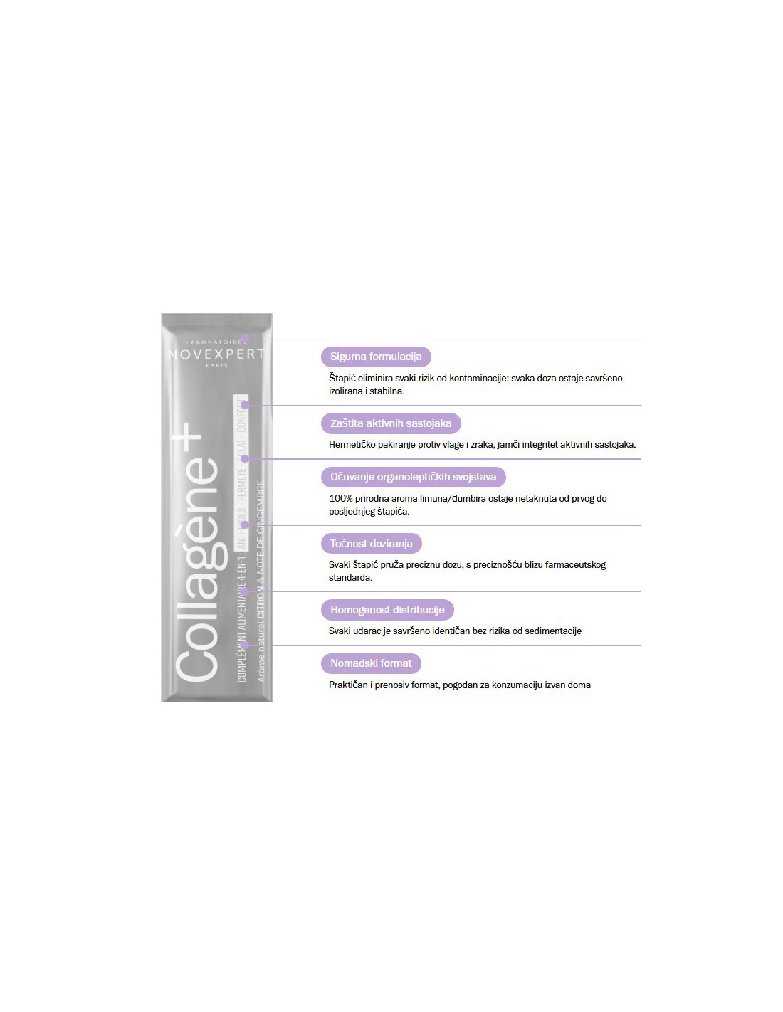 Collagen+ je dodatak prehrani koji su razvili istraživači iz Novexperta kako bi potaknuli prirodnu proizvodnju kolagena, pružajući ultra-asimilabilne peptide koje koža prepoznaje i izravno koristi.