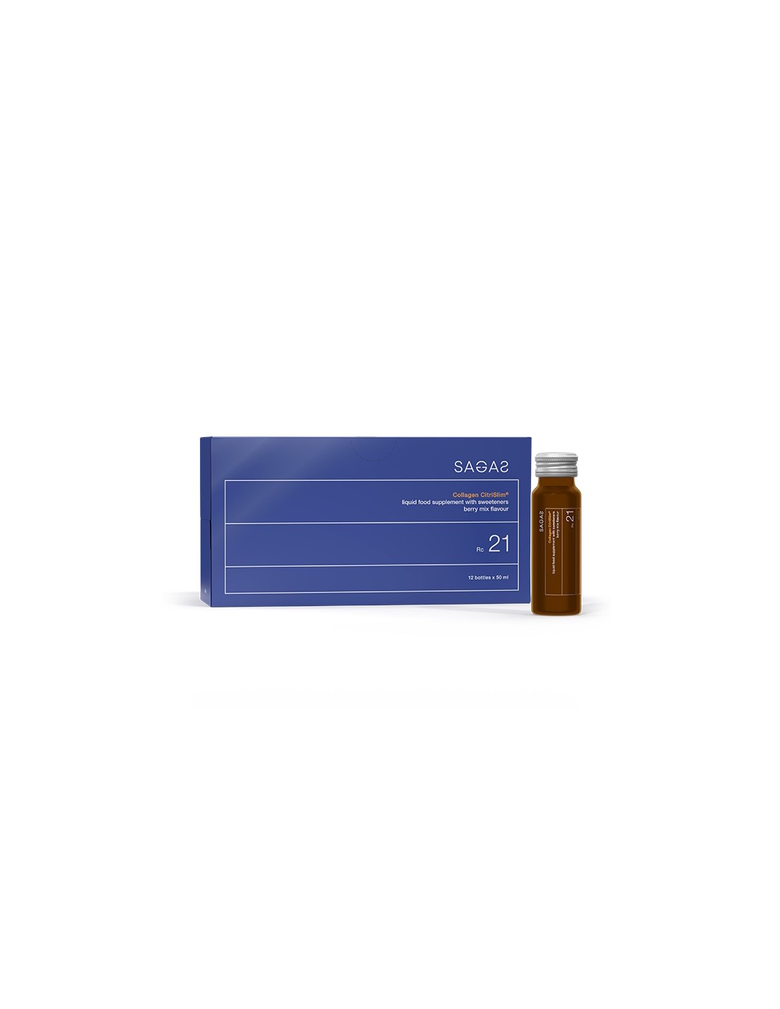 Sagas Rc 21 Collagen CitriSlim tekući je dodatak prehrani koji sadrži idealan balans sastojaka – 20 000 mg CitriSlim® ekstrakt nezrelog ponkan ploda (Citrus reticulata), 10 000 mg Jellice® hidroliziranog morskog kolagena i 10 mg praha borovnice (Vaccinium angustifolium)