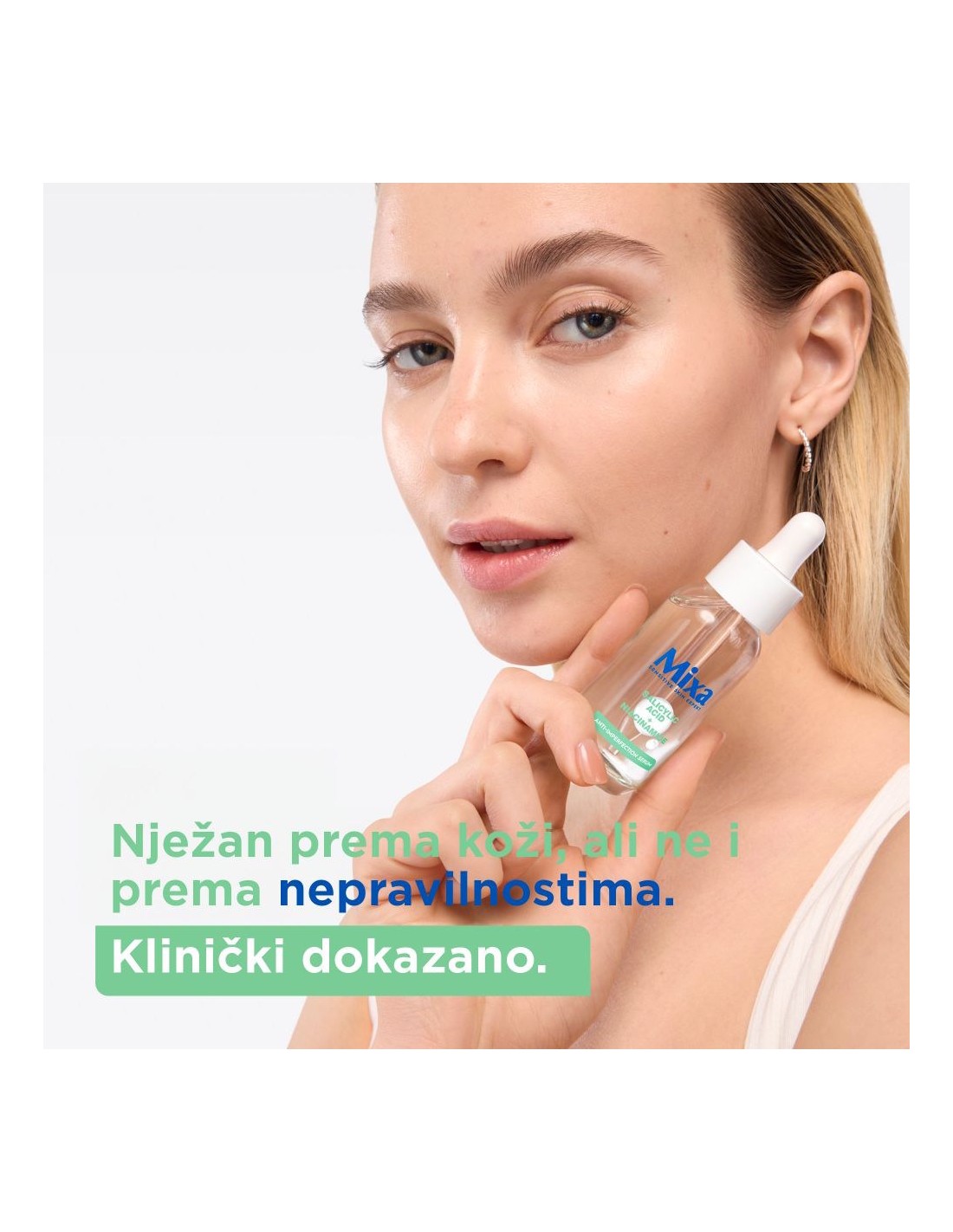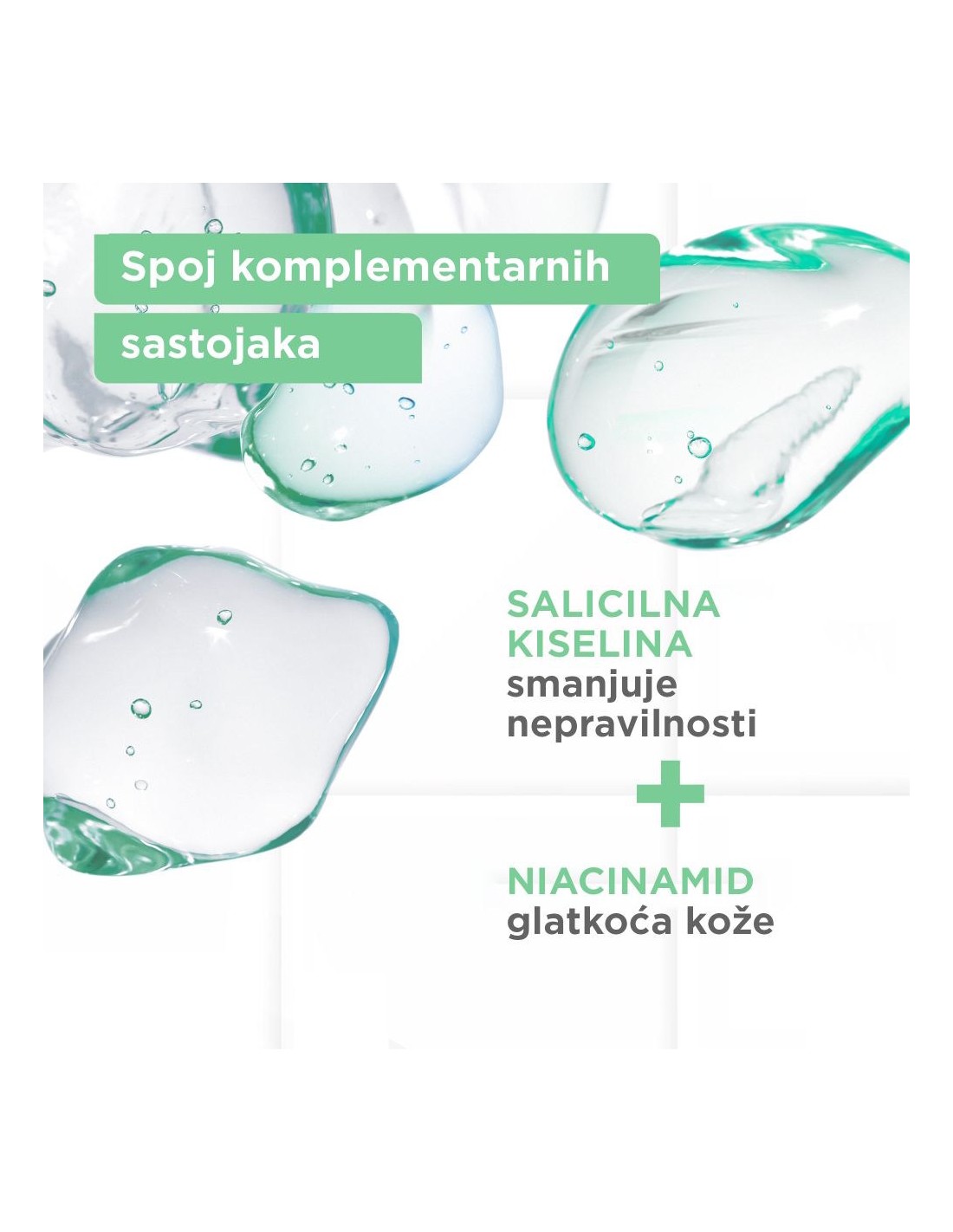 Serum sa salicilnom kiselinom, beta hidroksi kiselinom (BHA) poznatoj po tome da smanjuje višak sebuma, sužava pore i minimizira pojavu mrlja.