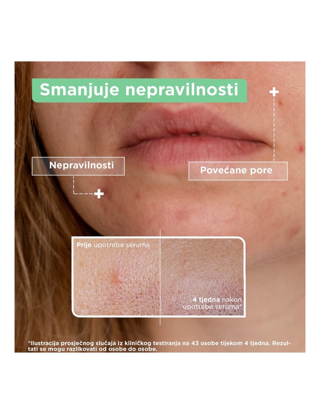 Smanjuje nepravilnosti, pore i mitesere za 90% te čini kožu glađom.