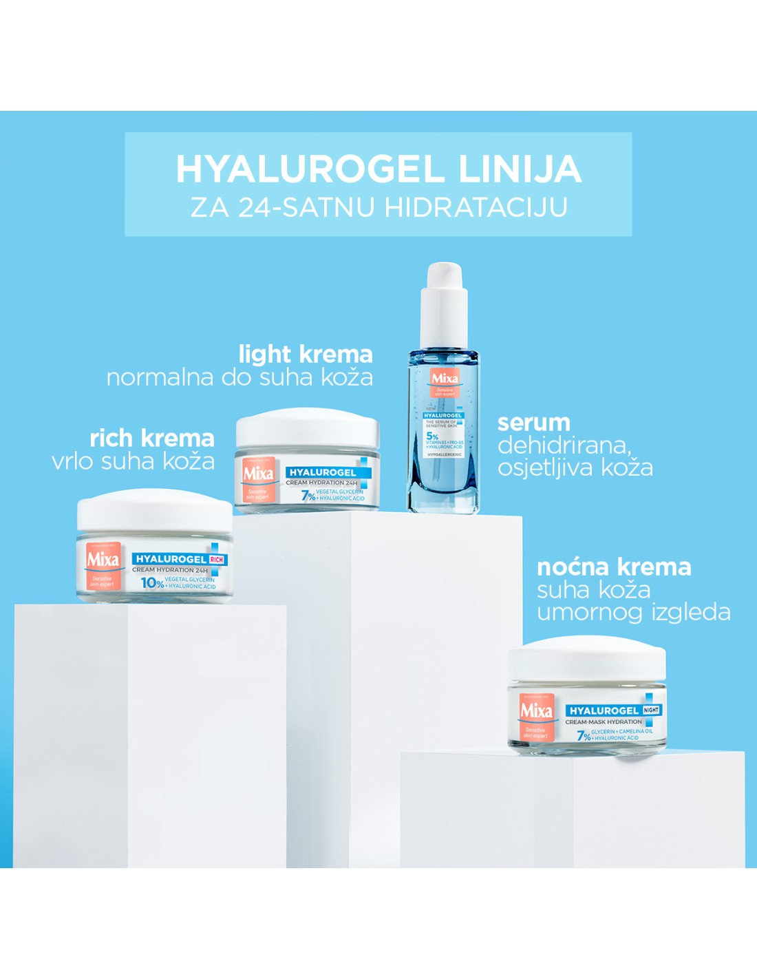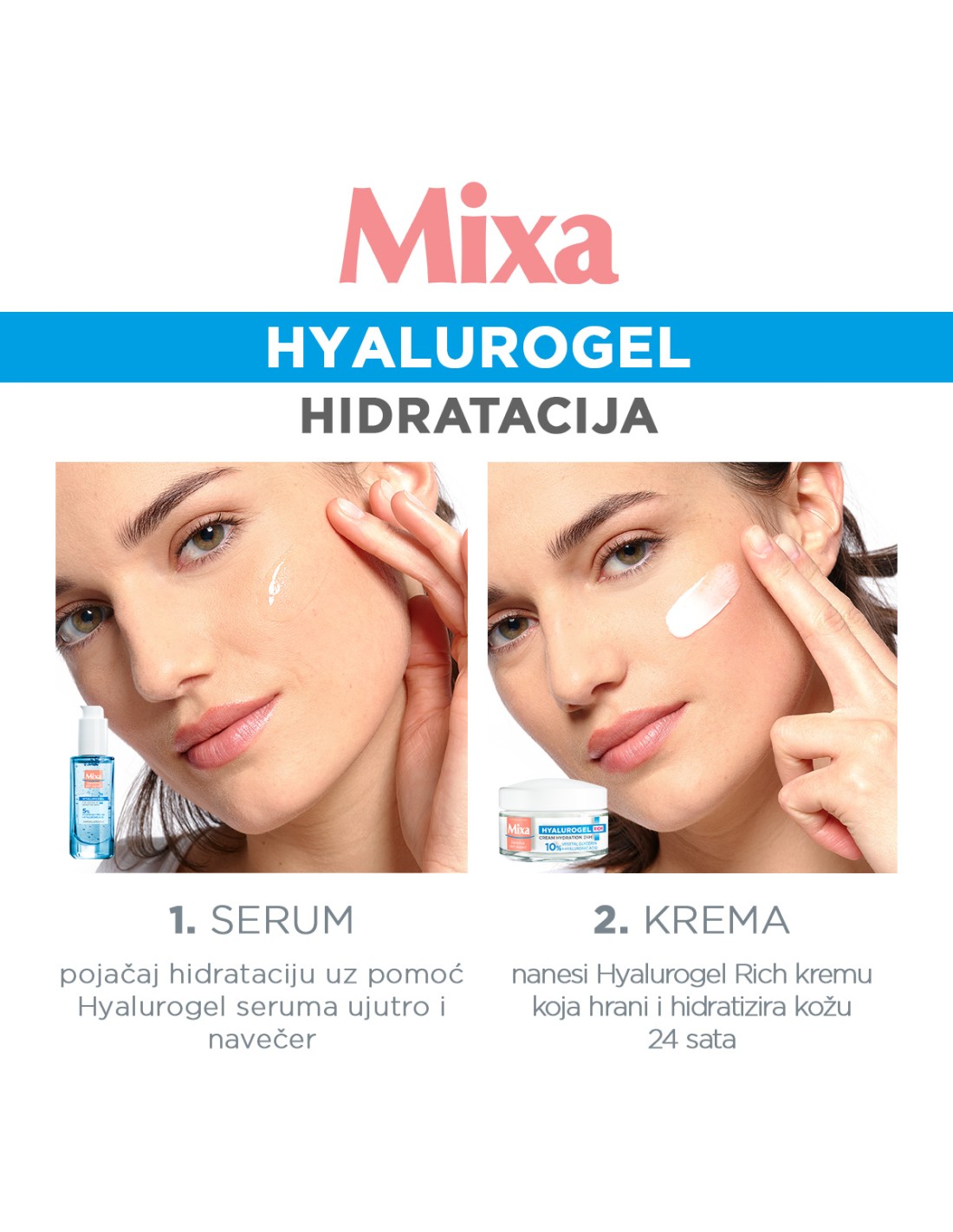 Uporaba: Nanesite Mixa Hyalurogel Super serum ujutro i navečer na čisto lice. Zatim nastavite primjenom kreme.