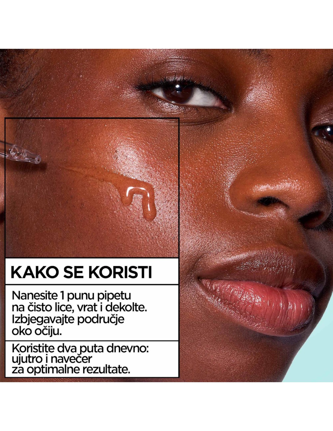 Uporaba: Nanesite jednu punu pipetu na čisto lice, vrat i dekolte. Koristite 2 puta dnevno: ujutro i navečer za optimalne rezultate. Izbjegavajte područje oko očiju.