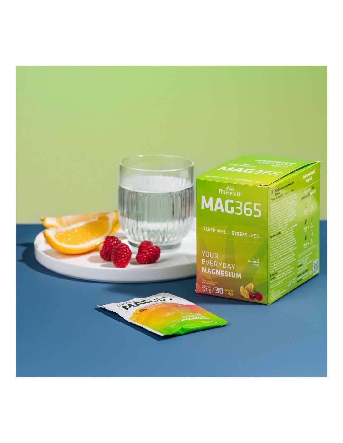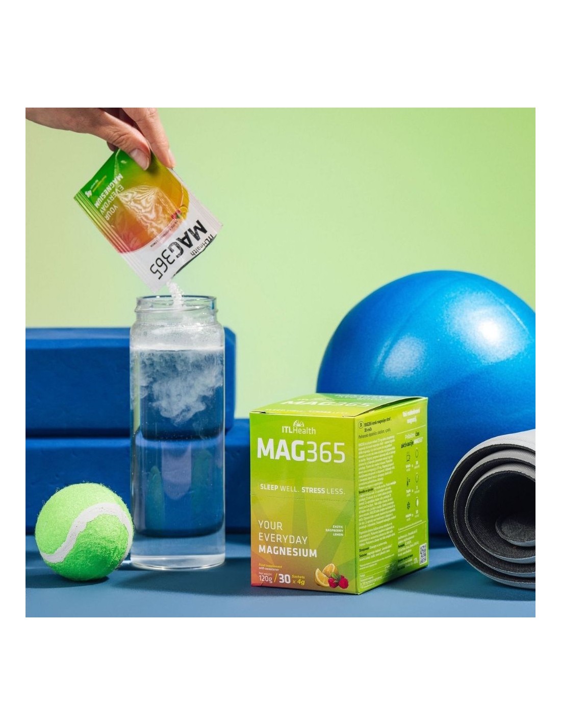 Uporaba: Jedna vrećica dnevno. Prašak umiješajte u malu količinu vode. Ako koristite vruću vodu, pričekajte 30 sekundi da se proizvod aktivira (prestane pjenušati). Ako koristite hladnu vodu, pričekajte 30 minuta prije konzumacije. Zatim u čašu dodajte još vruće ili hladne vode, po želji, i popijte. Proizvod je namijenjen odraslima i djeci starijoj od 12 godina. MAG365 možete uzimati između obroka ili na prazan želudac. Dozu možete uzeti odjednom ili je rasporediti tijekom dana. Za uporabu tijekom trudnoće i dojenja posavjetujte se s liječnikom.