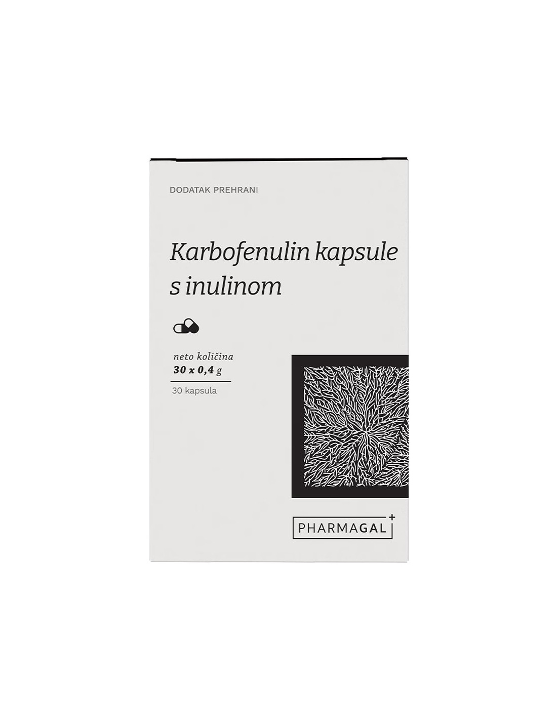 - dnevna doza 4 kapsule sadrži 600 mg aktivnog ugljena i 518 mg inulina
