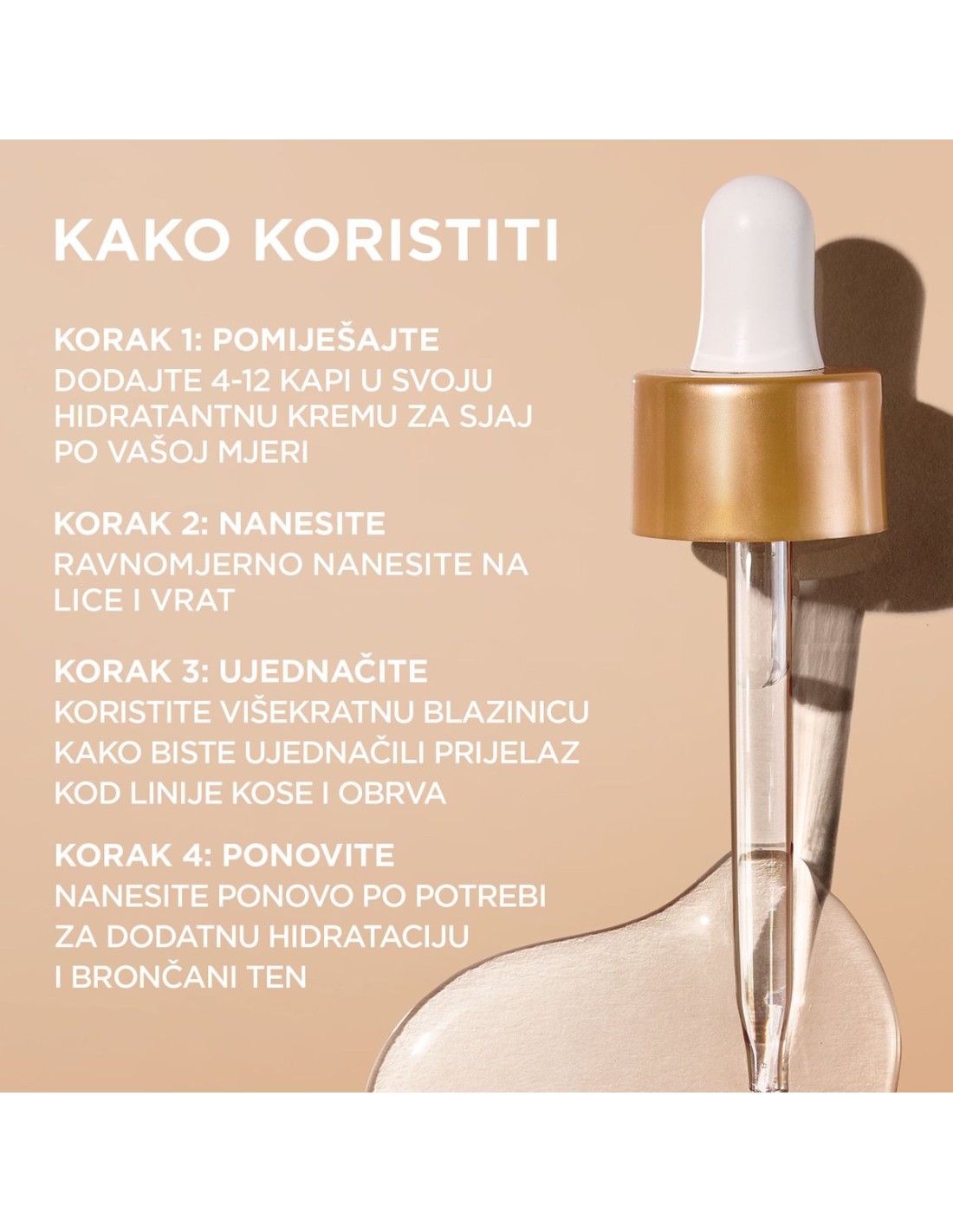 S hijaluronskom kiselinom i kokosovom vodom, kapi za samopotamnjivanje lica pružaju prilagođeno postupno tamnjenje.