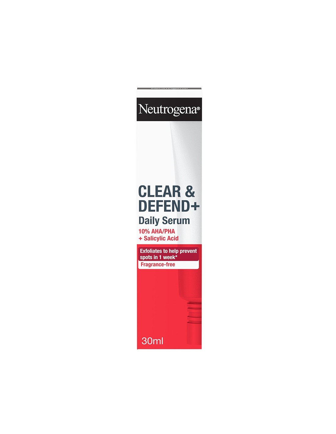 Vrhunske sastojke za njegu kože spojili smo kako bismo vam donijeli Clear & Defend+. Ovaj klinicki dokazan dnevni serum sastavljen od snažne kombinacije AHA (glikolna kiselina, bademova kiselina), BHA (salicilatna kiselina) i PHA (glukonolakton). Sadrži salicilatnu kiselinu, aktivnu tvar za čišćenje koja spriječava izbijanje prištića.