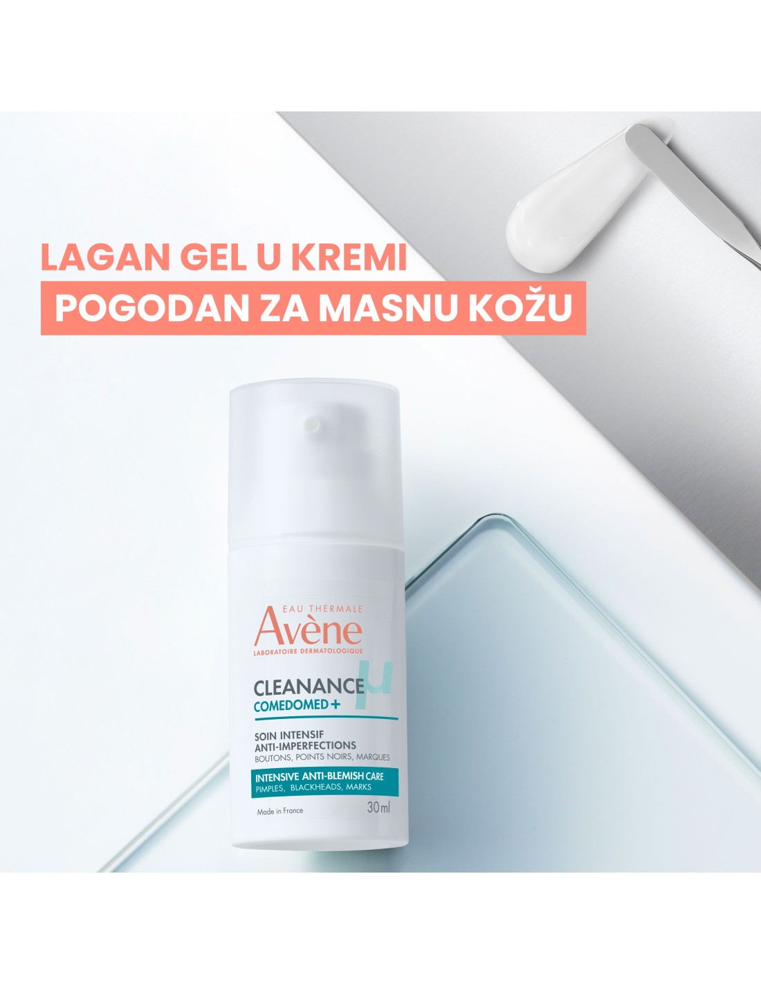 Zahvaljujući Comedoclastinu™ **, djelatnom sastojku s patentiranim svojstvima, novi Comedomed+, sada obogaćen niacinamidom, djeluje u borbi protiv mrlja u nastanku.