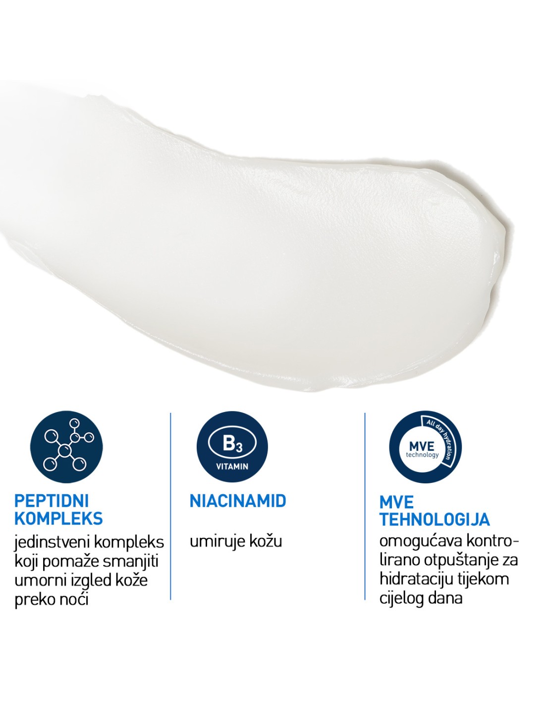 Naša noćna krema za obnovu kože bez masnog osjećaja koja intenzivno hidrira kožu namijenjena je omekšavanju i obnovi izgleda umorne kože, a naša patentirana tehnologija MVE sadržava ceramide kako bi se osigurao učinkovit prodor u kožnu barijeru i sporo otpuštanje tijekom vremena.