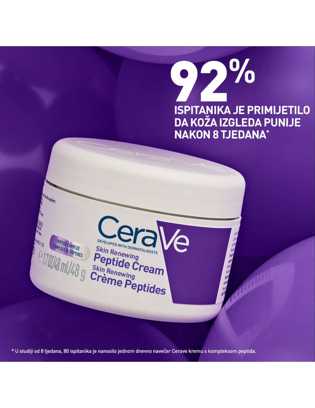 Pogodna za sve tipove kože, CeraVe noćna krema za obnovu kože sadržava kompleks biomimetičkih peptida, hijaluronsku kiselinu i tri esencijalna ceramida koji zajedno zadržavaju vlažnost kože i pomažu obnoviti zaštitnu barijeru vaše kože tijekom noći.