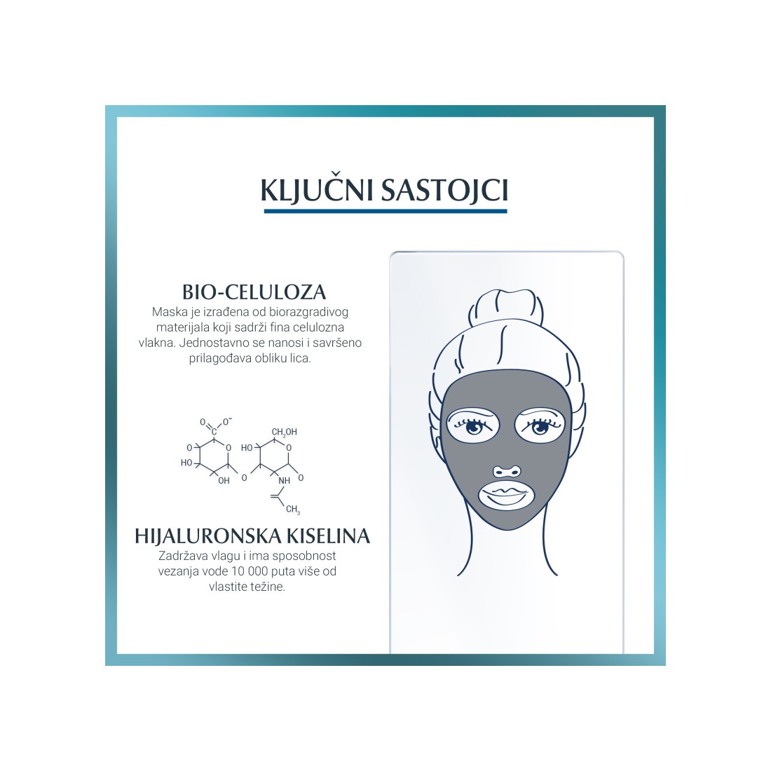 Sama maska izrađena je od bio-celuloze, biorazgradivog materijala prirodnog podrijetla. Lako se nanosi i pruža čvrsto prijanja.