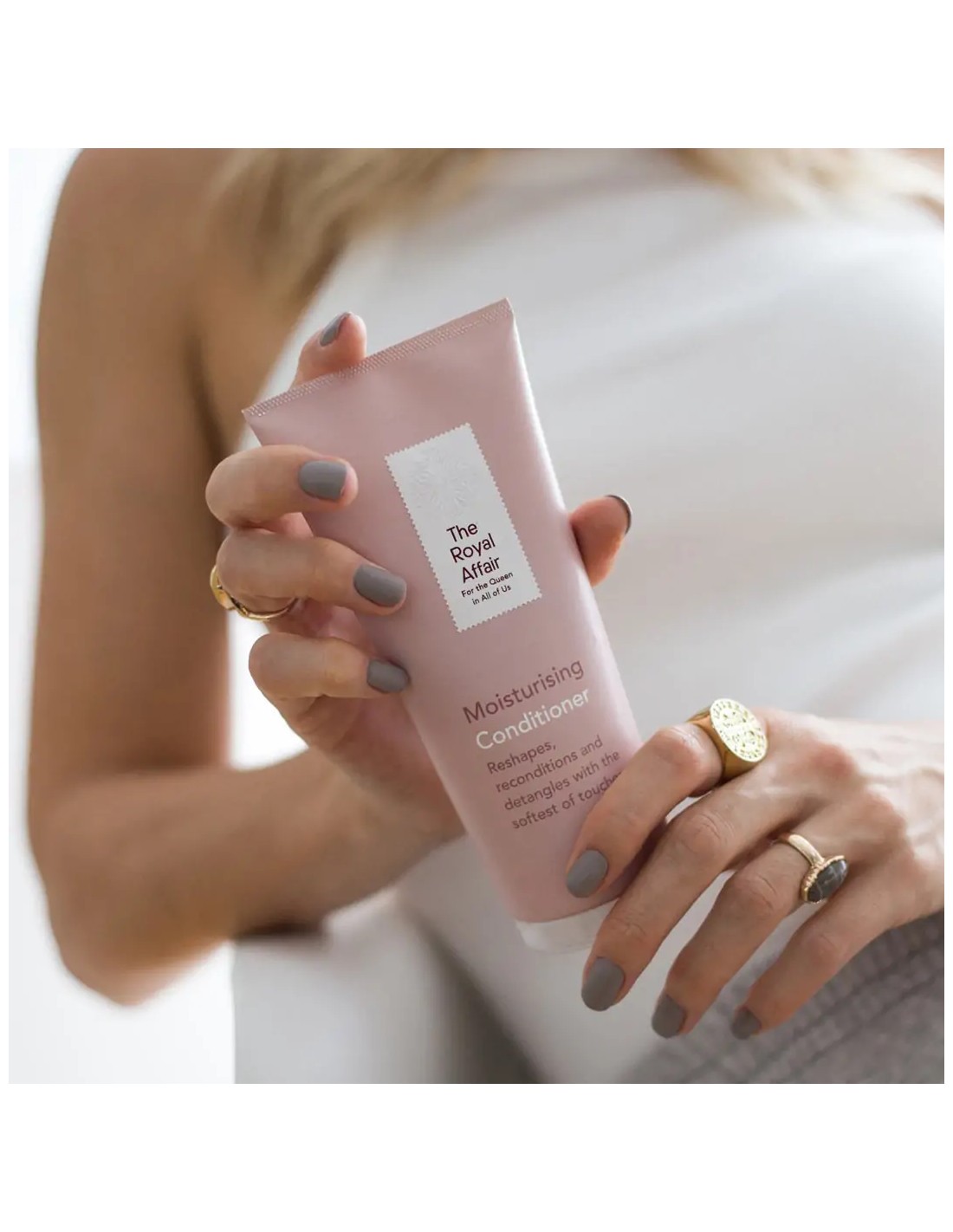Proizvodi The Royal Affair rezultat su slovenskog znanja i kreativnosti te su proizvedeni u skladu s najvišim standardima kvalitete u Europskoj uniji. Njegujte kosu snagom proizvoda The Royal Affair Moisturising Conditioner i uživajte u prekrasnom izgledu kose koji će vas oduševiti!
