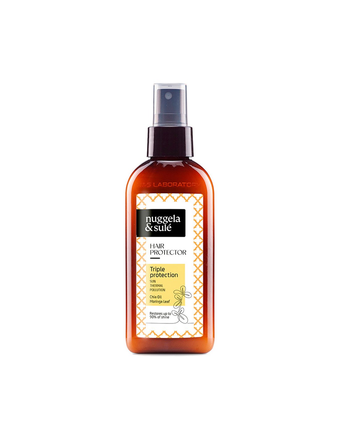 Nuggela & Sulé Sprej za zaštitu kose je formula s najsuvremenijim sunčanim filtrima, pojačana uljem chia sjemenki koje pruža esencijalne masne kiseline Omega 3 i 6, vitamine, flavonoide i antioksidanse za zaštitu kose i jača njezin prirodni sjaj.