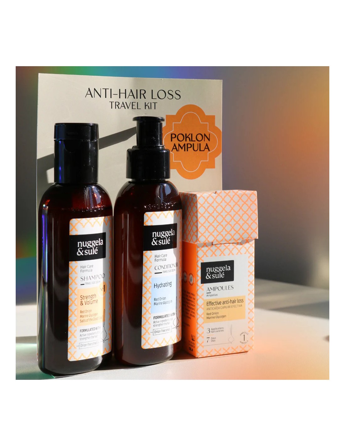 Sadrži šampon za čišćenje kose, regenerator za njegu te tretman u obliku ampule koja jača kosu i smanjuje ispadanje.