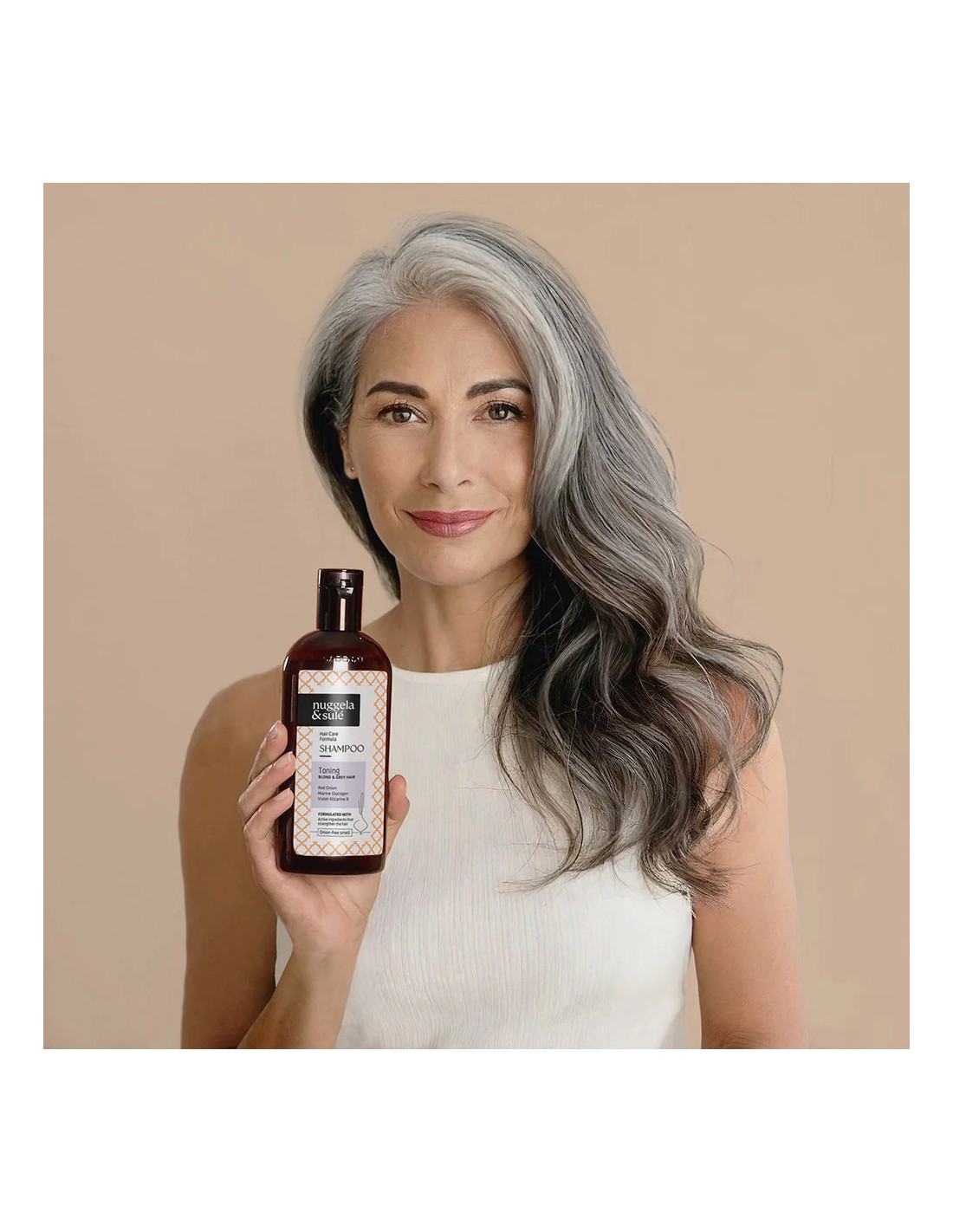 Toning šampon s aktivnim sastojcima poput morskog glikogena, ekstrakta crvenog luka i biljnog glicerina, poboljšava jedinstvenost sijede kose, bila ona bijela, srebrna ili platinasta. Jer nisu sve sijede kose iste.