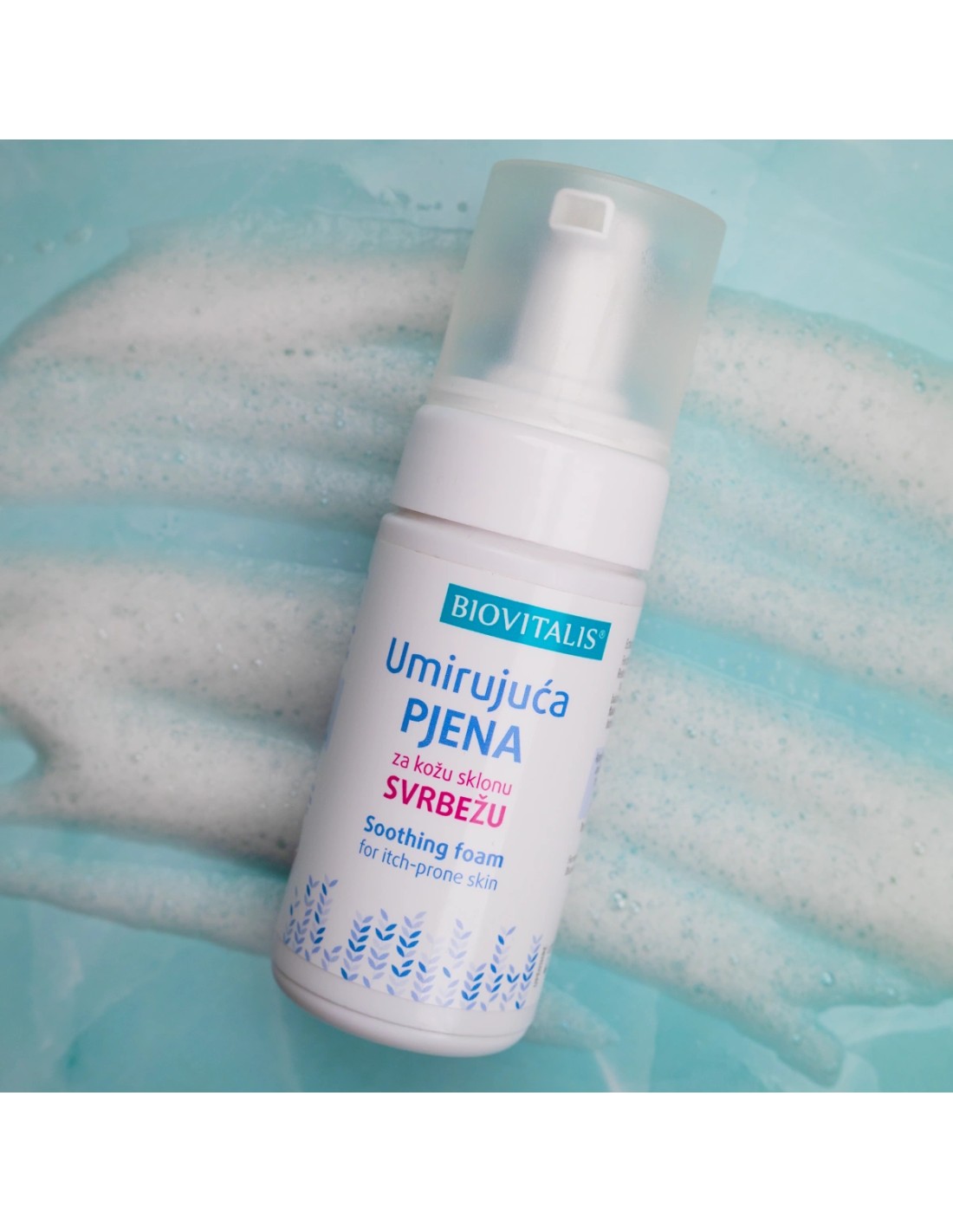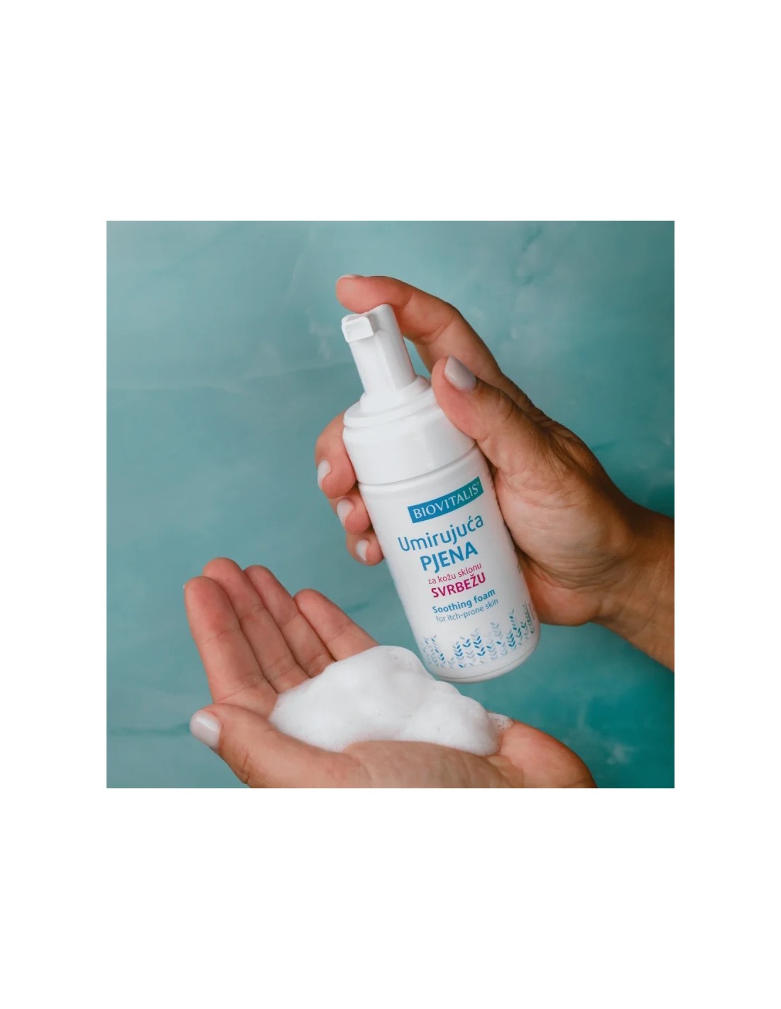 Biovitalis® Umirujuća pjena pogodna je za svakodnevnu njegu nadražene i osjetljive kože. Preporuča se kod atopijskog dermatitisa, a sigurna je i za korištenje na koži sklonoj ljuskanju te kod drugih stanja kože praćenih svrbežom i nelagodom. Može se primjenjivati na koži lica i tijela, te na vlasištu. Smanjuje osjećaj svrbeža, pruža dugotrajan osjećaj ugode i ravnoteže kože, a lagana tekstura omogućuje brzo upijanje bez ljepljivosti. Pjena ostaje na koži – nije potrebno ispiranje. Nakon upijanja, preporučuje se primjena odgovarajuće kreme za dodatnu njegu. U slučaju vrlo suhe kože sklone atopiji, preporučuje se primjena Emulzije.