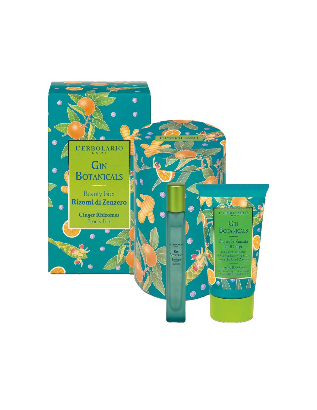 Sadrži dva proizvoda iz linije Gin Botanicals u putnim formatima: uniseks parfem s citrusno-aromatičnim mirisom u slatkoj bočici za torbicu i krema za tijelo u tubi.