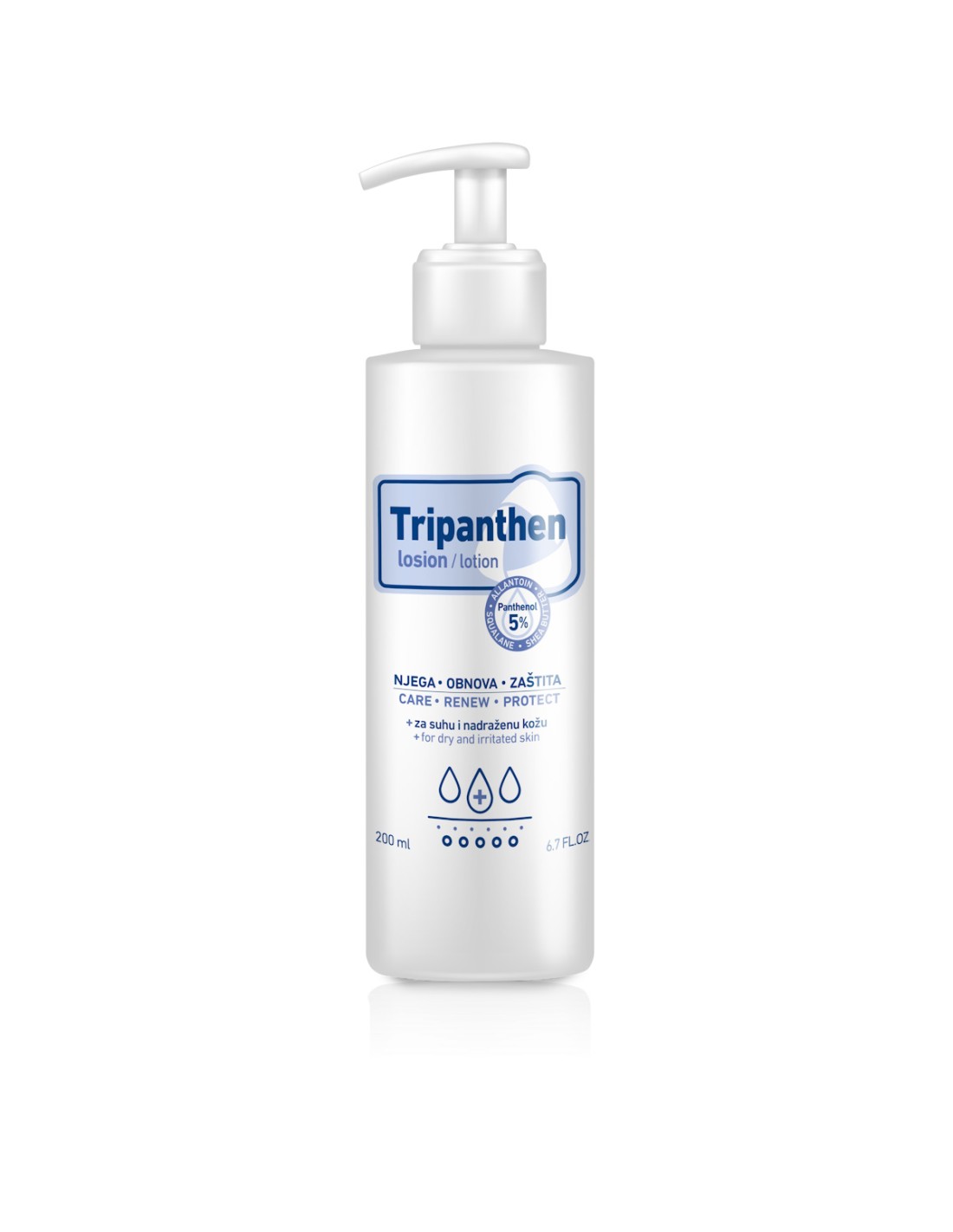 Tripanthen losion sadrži tri aktivna sastojka uz 5% pantenola za trostruko djelovanje: njega, obnova i zaštita kože lica i tijela.
