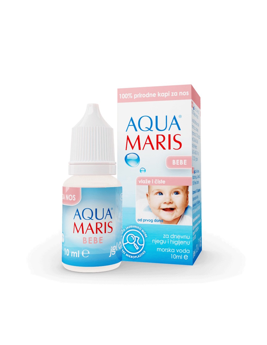 Svrha: Disanje kroz nos jedini je ispravan način disanja, što je važno za rast i razvoj djeteta, stoga na higijenu nosa treba paziti od rođenja. Začepljen nos tijekom prehlade ili alergije može se odraziti i na zdravlje ostalih dijelova dišnog sustava i uha. Morska voda iz Aqua Maris Bebe kapi blagotvorno djeluje na sluznicu nosa, potpomažući prirodne mehanizme njezina čišćenja