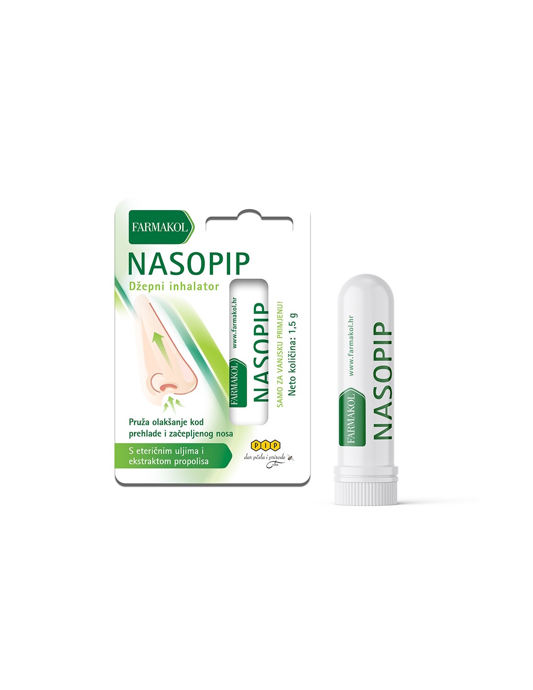 Nasopip džepni inhalator inovativna je kombinacija mješavine eteričnih ulja i ekstrakta propolisa,te po sastavu jedinstven na tržištu. Namijenjen je samo za vanjsku uporabu-inhalaciju.