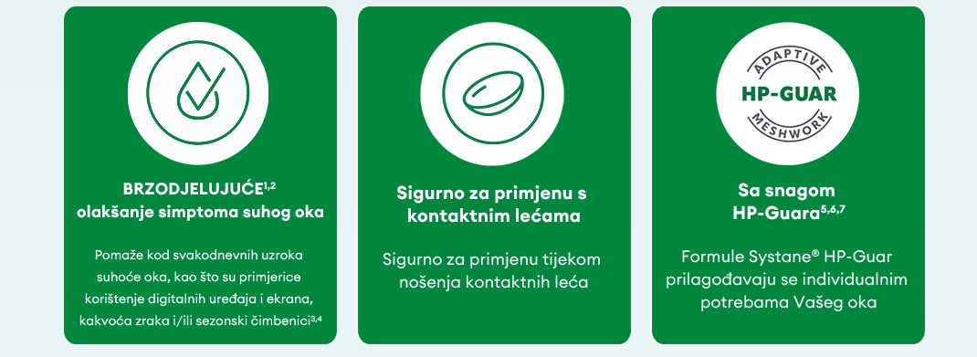 - Sa snagom HP-Guara 5,6,7: Formule Systane® HP-Guar prilagođavaju se individualnim potrebama Vašeg oka