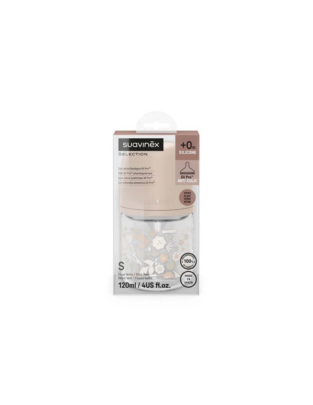 Nježna bočica za bebe od rođenja s antikolik sustavom. Suavinex Premium SX Pro staklena bočica 120 ml 0+ idealna je kao prva bocica za bebu ili za kombiniranje s dojenjem.