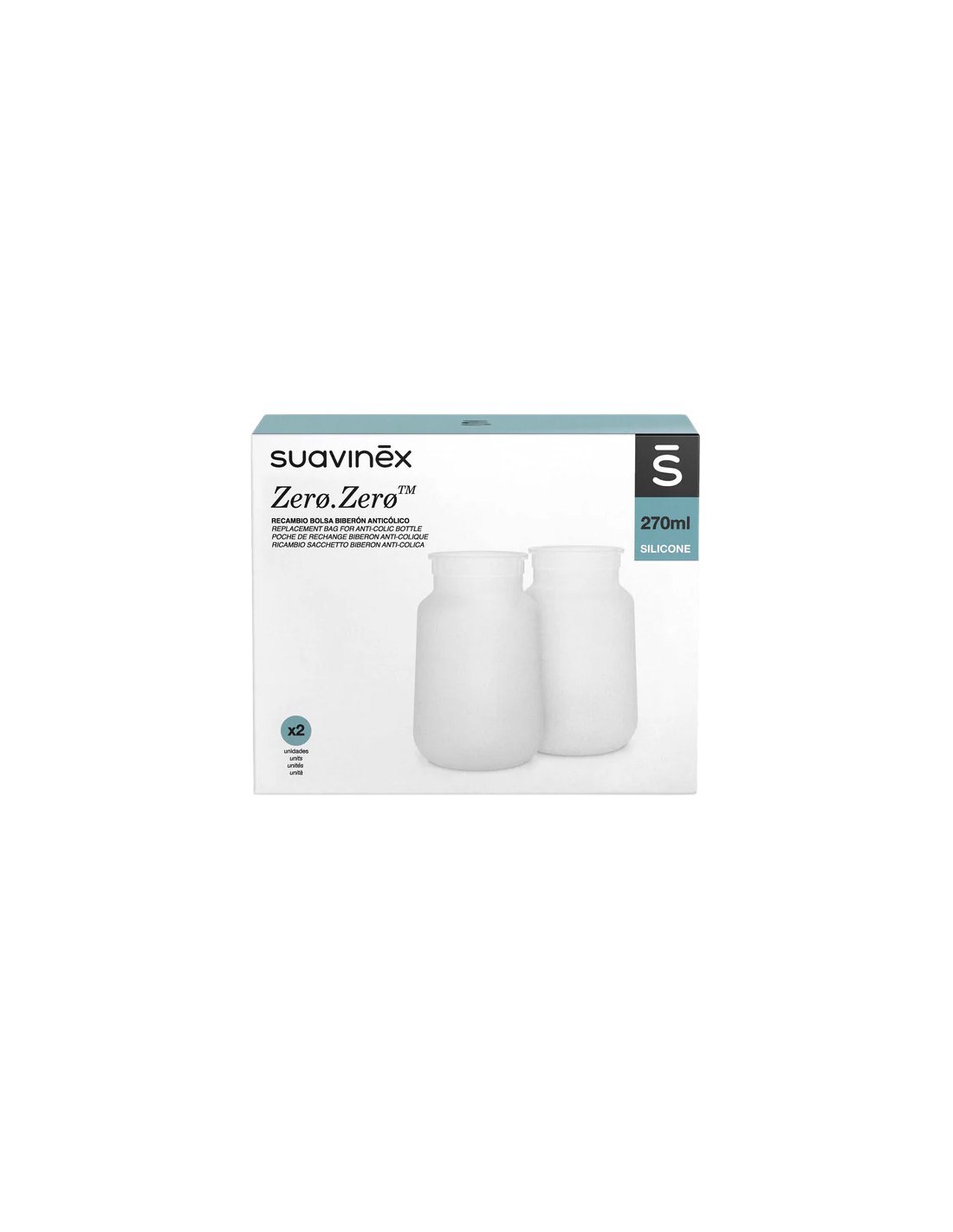 Maloprodajno pakiranje sadrži 2 zamjenske vrećice zapremnine 270 ml, namijenjene Zero.Zero bočicama.