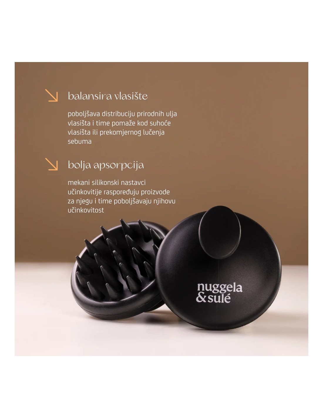 Čarobna četka za masažu Nuggela & Sulé pomaže u revitalizaciji kose jer pruža opuštajuću terapeutsku masažu koja potiče protok krvi i kapilarnu prehranu. Nadalje, uporaba Nuggela & Sulé četke za masažu vlasišta stvara mikro-piling za restrukturiranje i uklanjanje mrtvih stanica kože koje mogu stvarati štetne mikroorganizme. Također pomaže pri dubinskom čišćenju korijena kose, a njena masaža smiruje svaki svrbež ili nelagodu te smiruje tjeme.