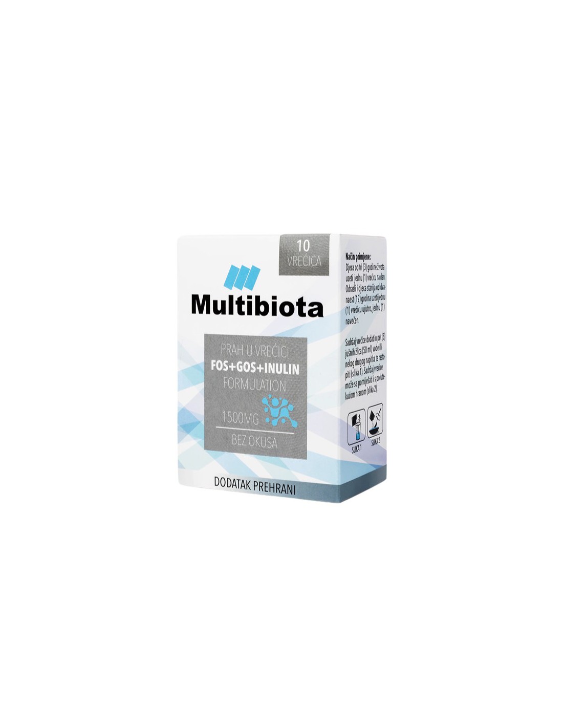 Multibiota prah u vrećicama je formula 3 topiva aktivna vlakna (GOS, FOS i inulin) čija je namjena osigurati uvjete za rast dobrih bakterija u crijevu, osobito bifidobakterija i laktobacila.