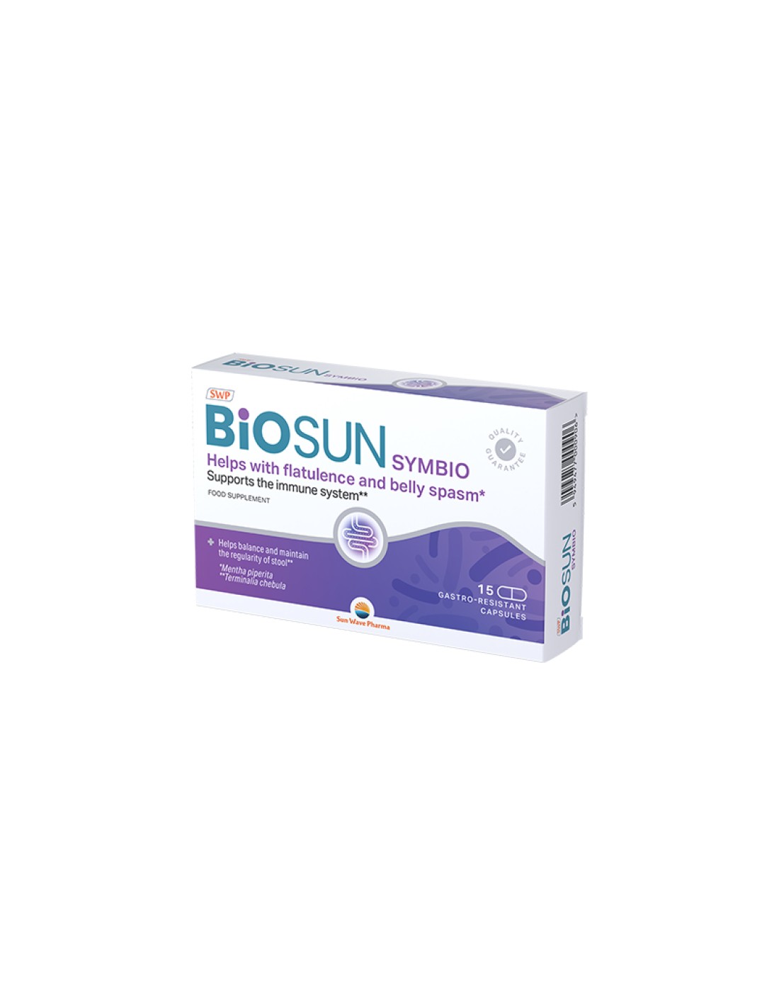 BioSUN Symbio je dodatak prehrani, koji nudi jedinstvenu kombinaciju 3 soja dobrih bakterija, prebiotika i dva biljna ekstrakta – Mentha piperita (list) i Terminalia chebula (plod).