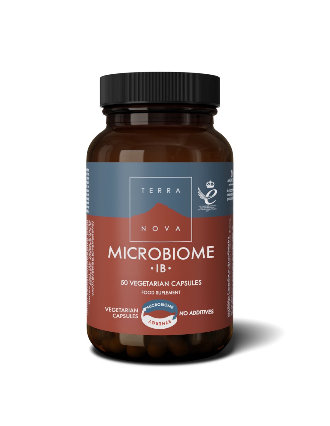 Terranova Mikrobiom IB sadrži 4 soja bakterija (Bacillus coagulans, Bifidobacterium bifidum, Lactocaseibacillus rhamnosus, Lactiplantibacillus plantarum) uz 5 Magnifood biljaka, koji zajedno sinergijski djeluju na uravnotežavanje crijevne mikrobiote i probavnih tegoba.