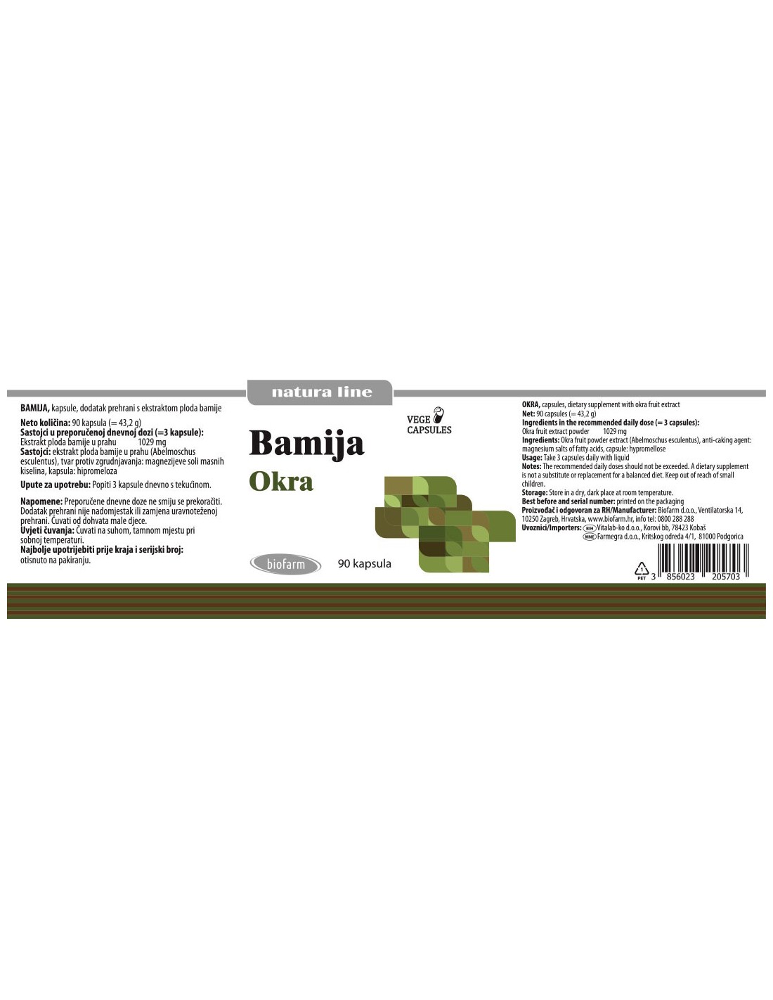 Sastav: ekstrakt ploda bamije u prahu ( Abelmoschus esculentus), tvar protiv zgrudnjavanja: magnezijeve soli masnih kiselina, kapsula (hipromeloza)
