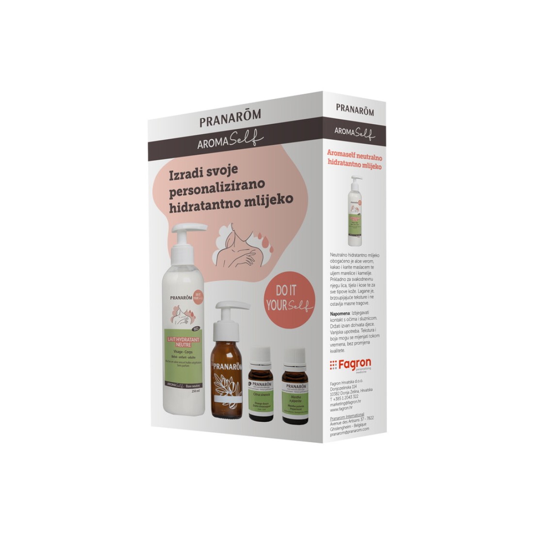 Aromaself paketi s uključenom bazom, eteričnim uljima i bočicom na potisak za izradu personaliziranog proizvoda s prijedlogom recepture.