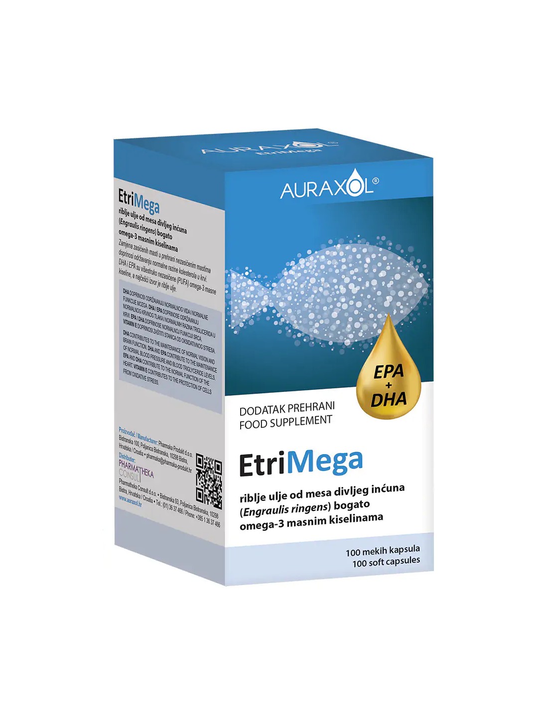 Kapsule EtriMega sadrže riblje ulje dobiveno iz mesa divljeg inćuna, bogato omega-3 masnim kiselinama EPA i DHA.